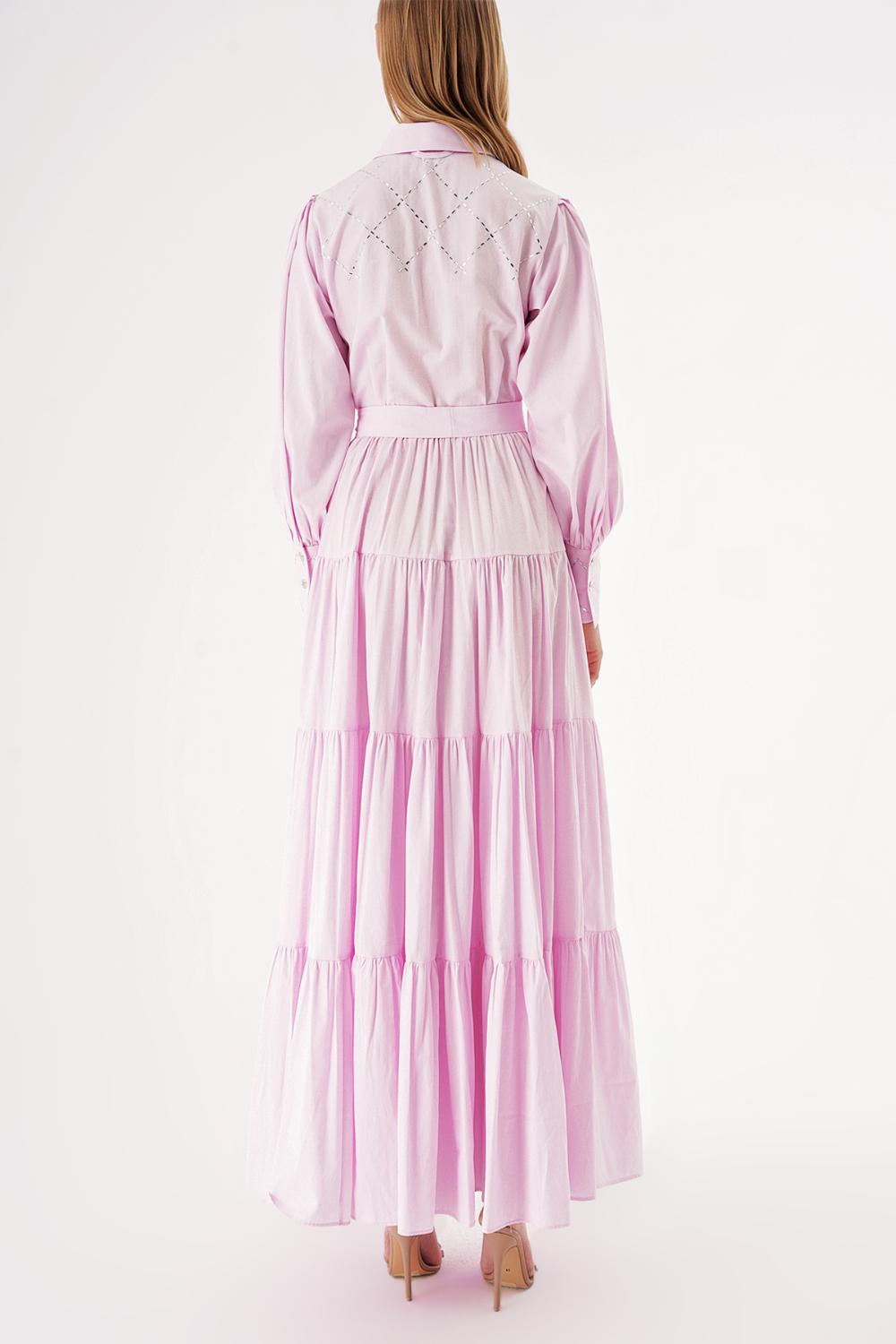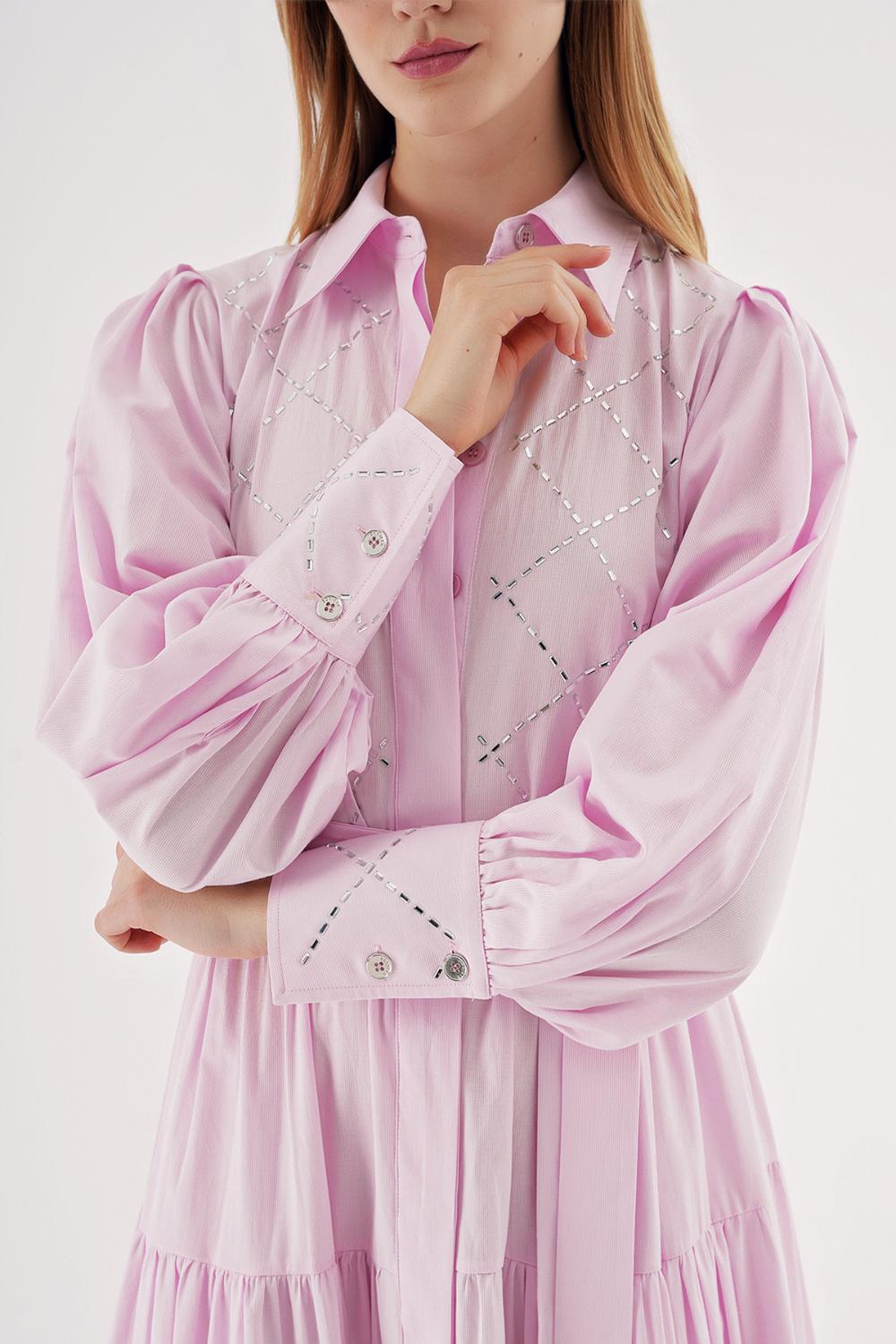 Açık Pembe Balon kol büzgülü kristal taş detaylı gömlek elbise 94546