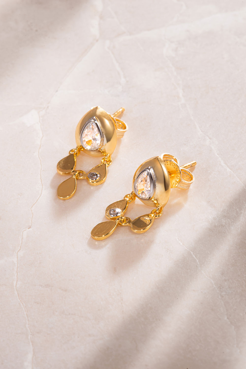 Ürün Özellikleri: İnce işçilik ve damla taş detayıyla tasarlanmıştır. Parlak taşlar, küpenin her bir detayıyla uyumlu şekilde ışıltı sağlar. Zarif ve modern bir aksesur olup günlük hayatta rahatça kullanabilirsiniz.