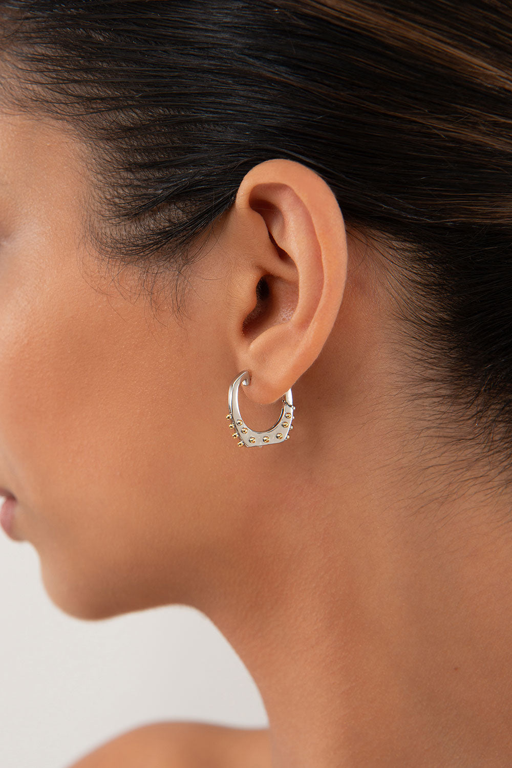 Altın Kabartma detaylı geometrik formlu 925 ayar gümüş küpe 130