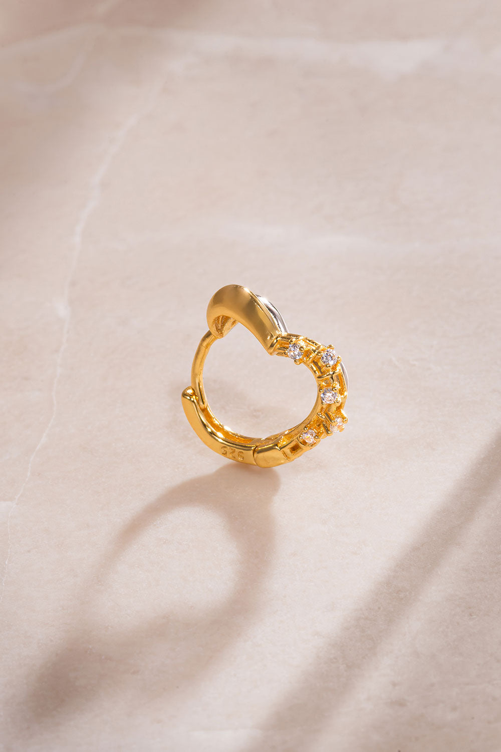 Altın Kalp ve kristal taş detaylı 925 ayar gümüş küpe 03