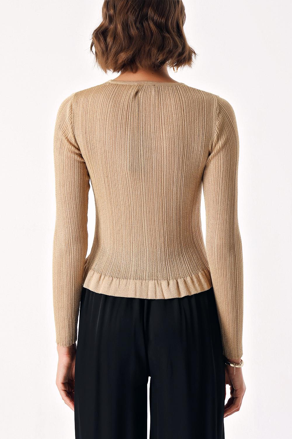 Altın Kısa ince parlak ipli örme hırka 28877