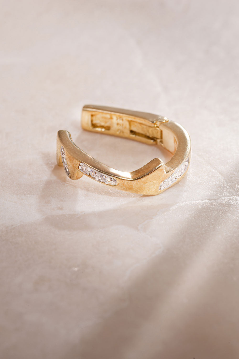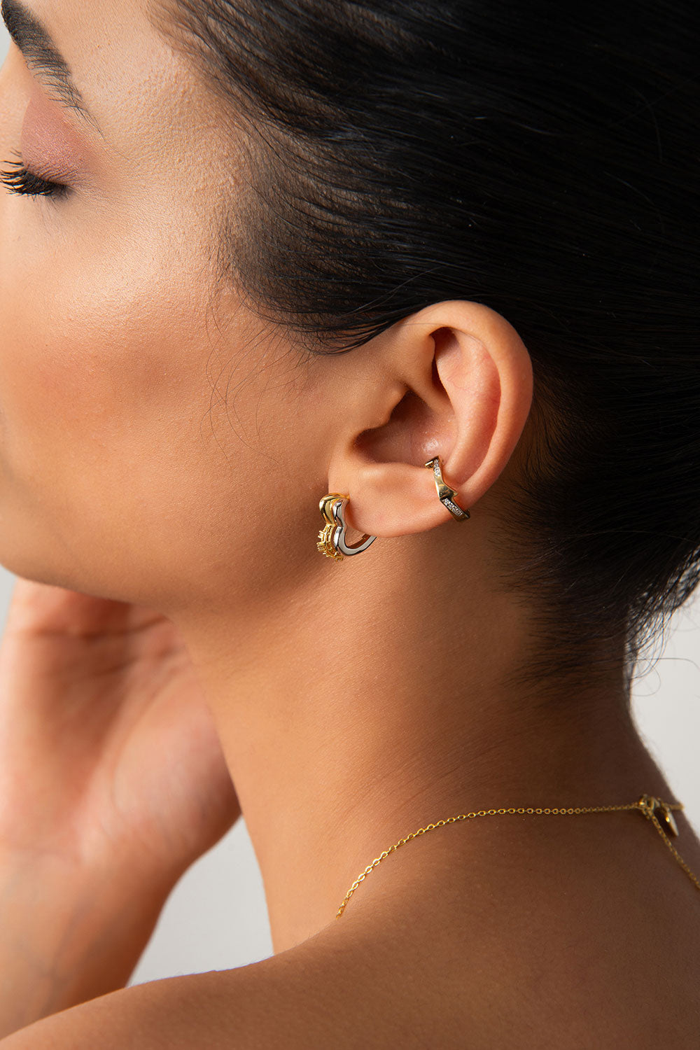 Altın Kristal taş detaylı 925 ayar gümüş kıkırdak küpe 04