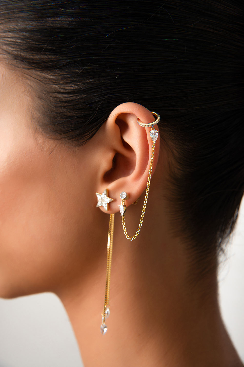 Altın Kristal taş detaylı tek zincirli 925 ayar gümüş küpe 44
