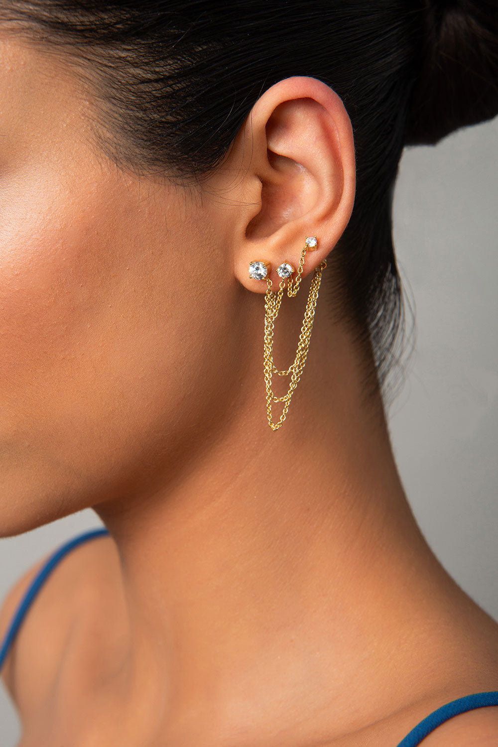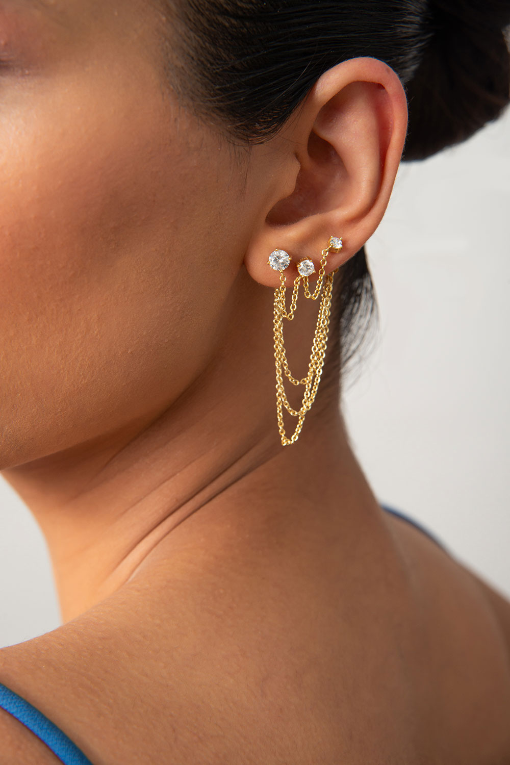 Altın Kristal taşlı zincir detaylı 925 ayar gümüş küpe 41