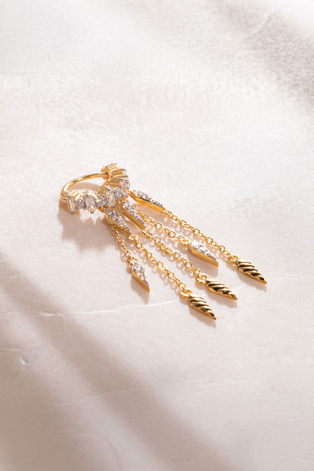 Altın Kristal ve sallantılı taş detaylı 925 ayar gümüş kıkırdak küpe 06