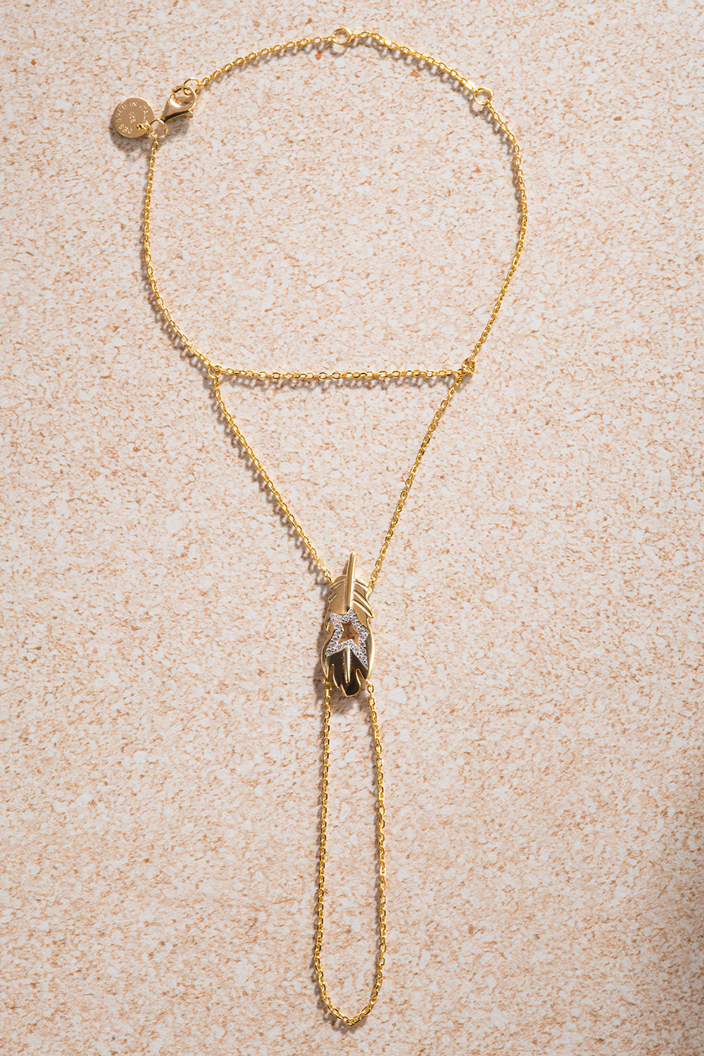 Altın Kuş tüyü kristal taş detaylı 925 ayar gümüş şahmeran 27