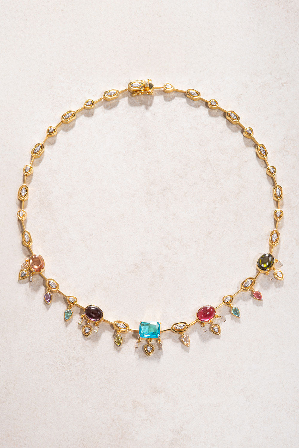 Altın Renkli kristal taş detaylı 925 ayar gümüş kolye 13