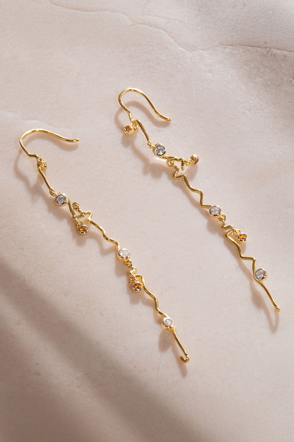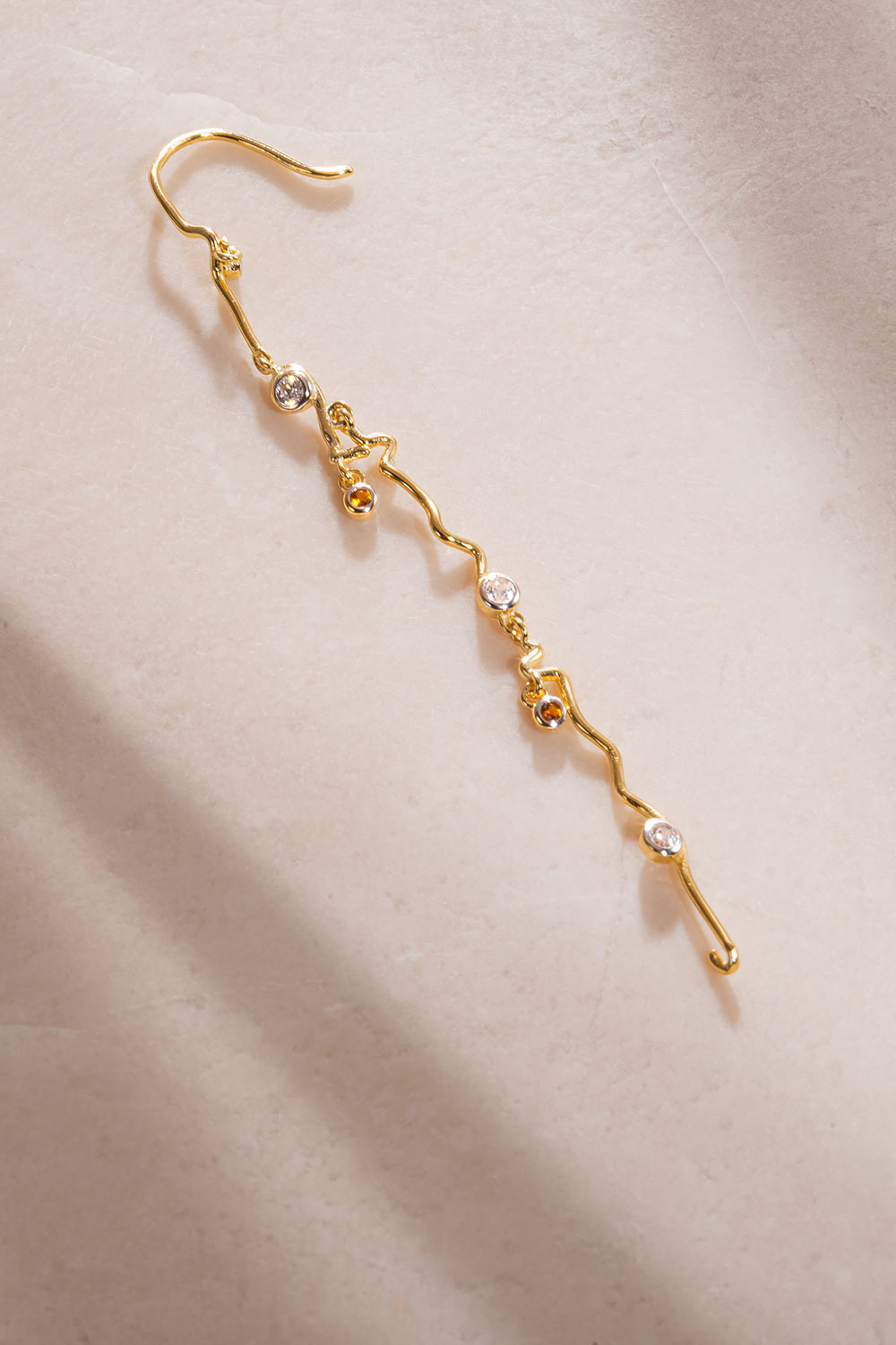 Altın Sallantılı kristal taş detaylı 925 ayar gümüş küpe 35