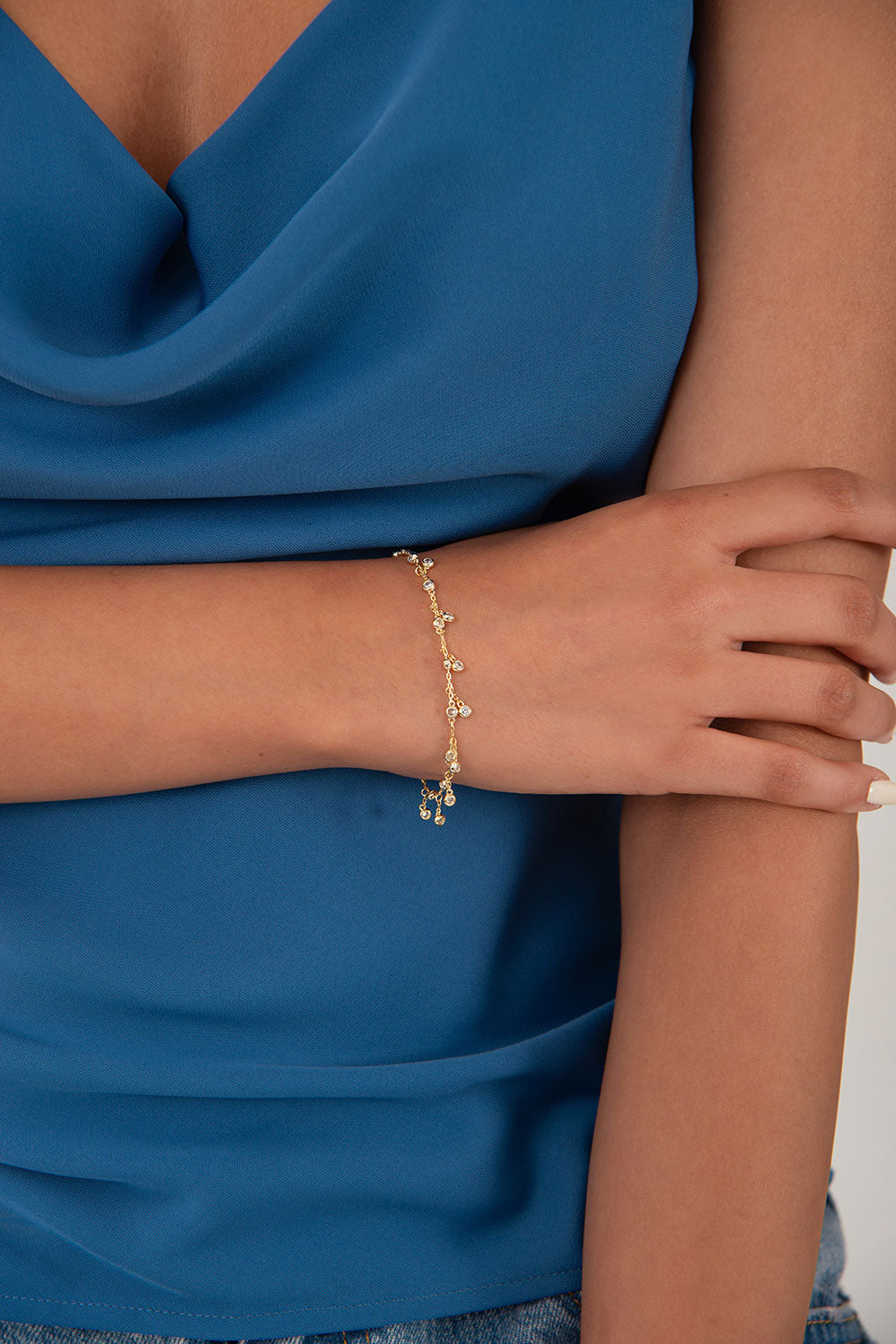 Altın Sallantılı ve damla formlu kristal taş detaylı 925 ayar gümüş bileklik 120