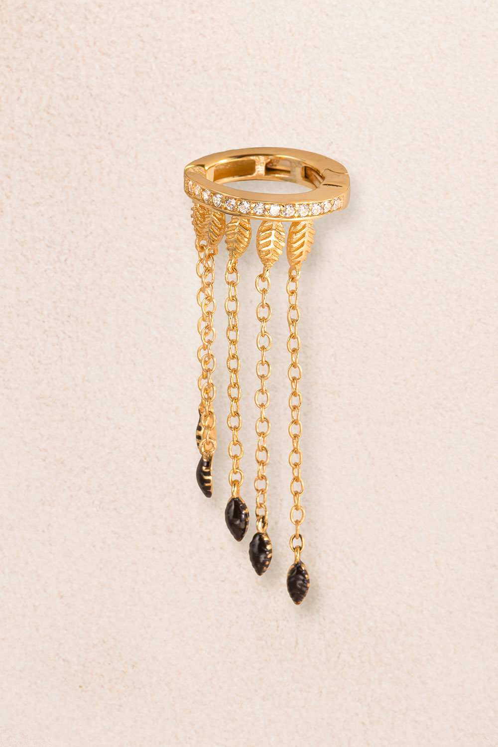 Altın Siyah taş zincirli ve kristal taş detaylı 925 ayar gümüş kıkırdak küpe 63