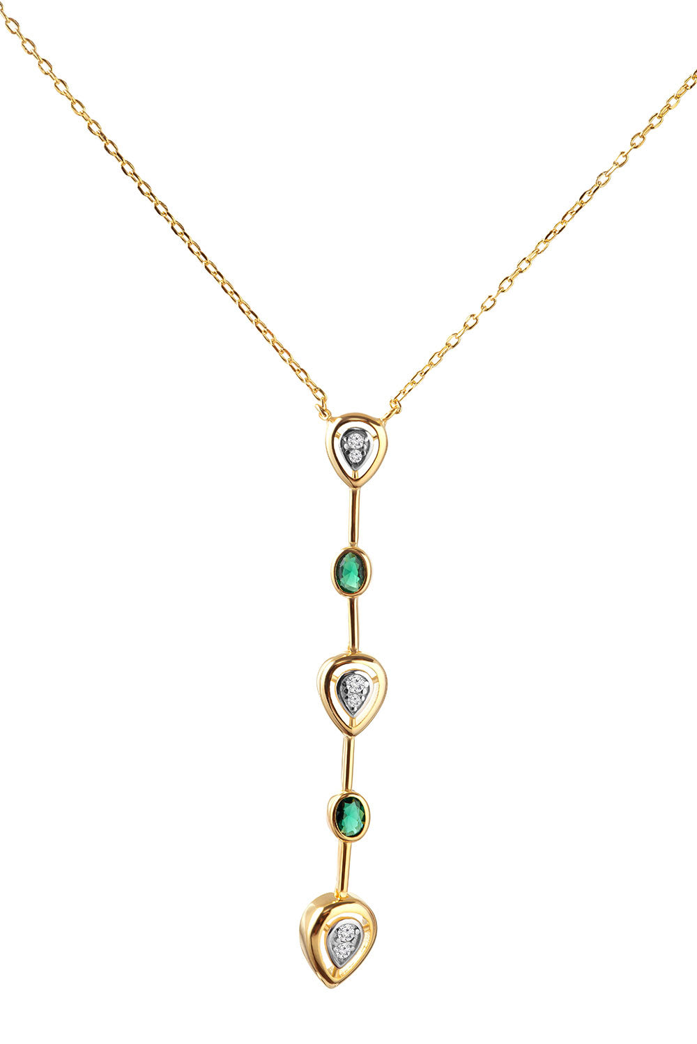Altın Yeşil ve kristal taş detaylı 925 ayar gümüş kolye 106