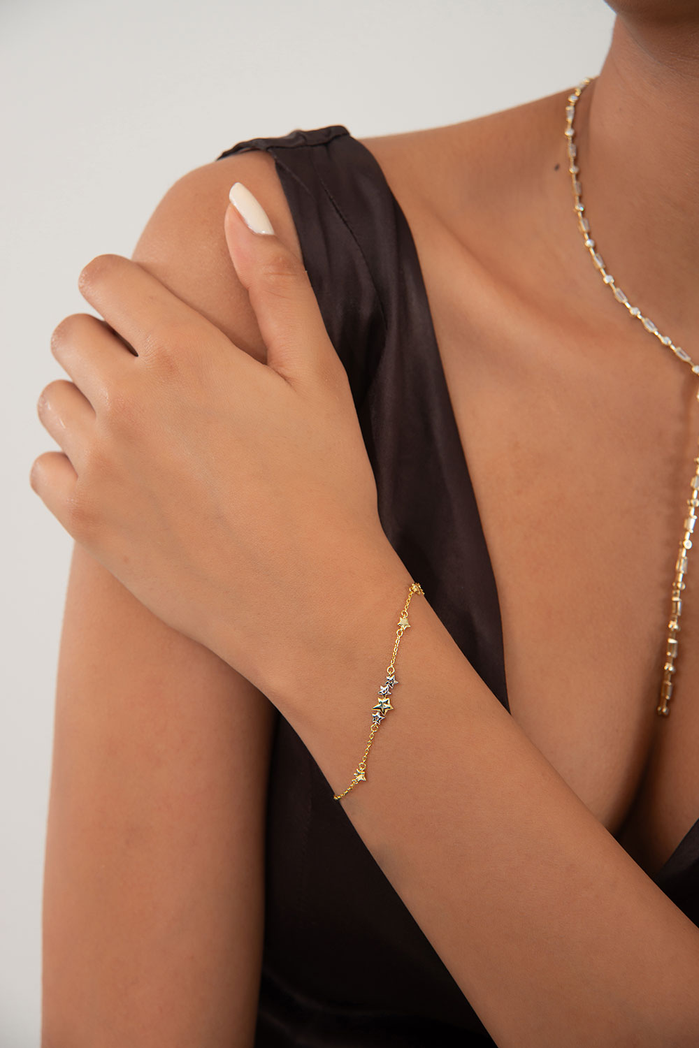 Altın Yıldız detaylı 925 ayar gümüş bileklik 154