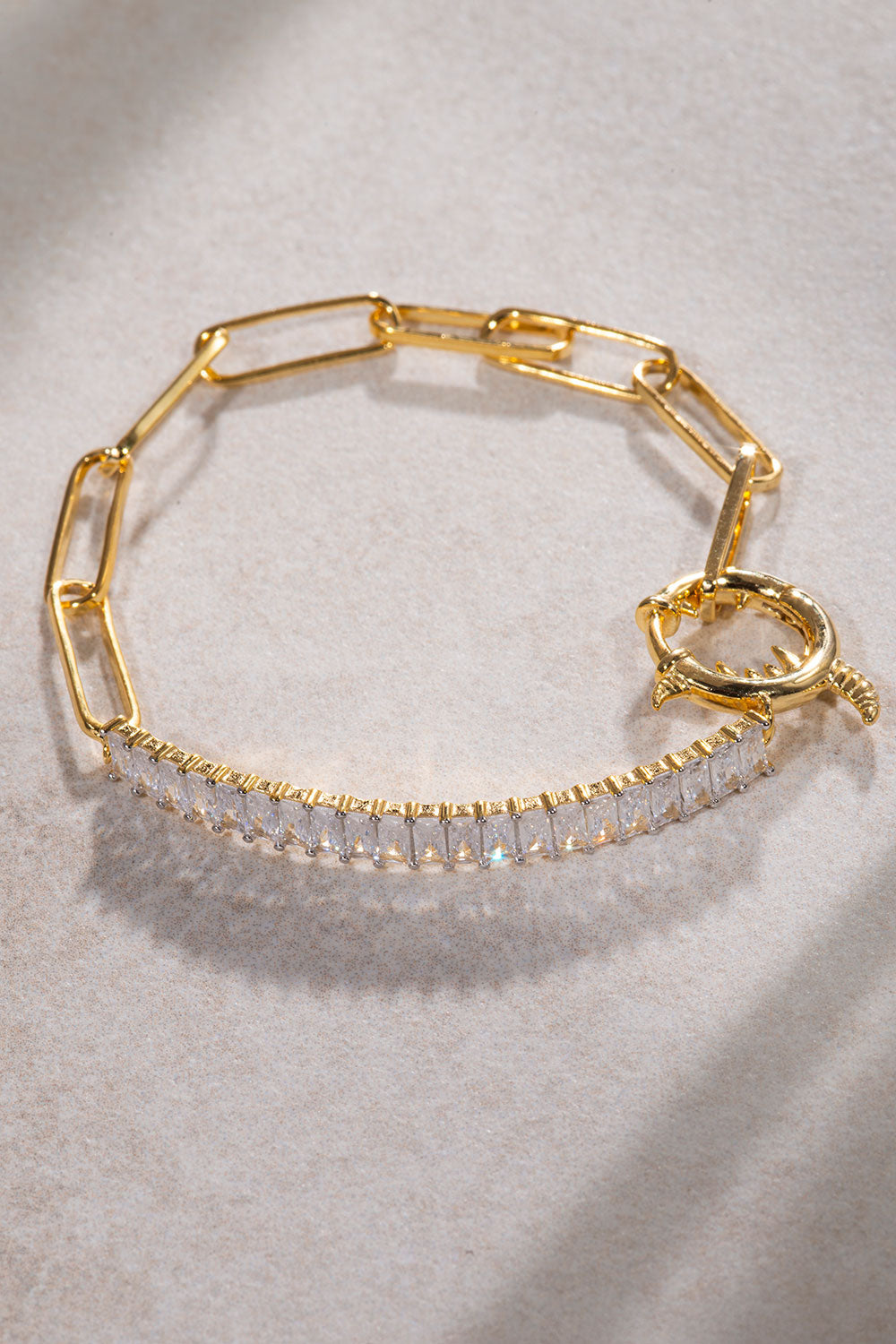 Altın Zincir ve kristal taş kesim detaylı 925 ayar gümüş bileklik 23