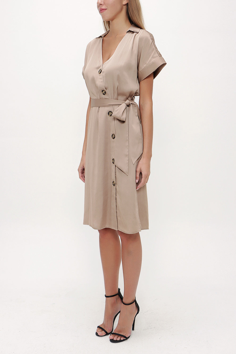 Bej Asimetrik patlı midi elbise 92764