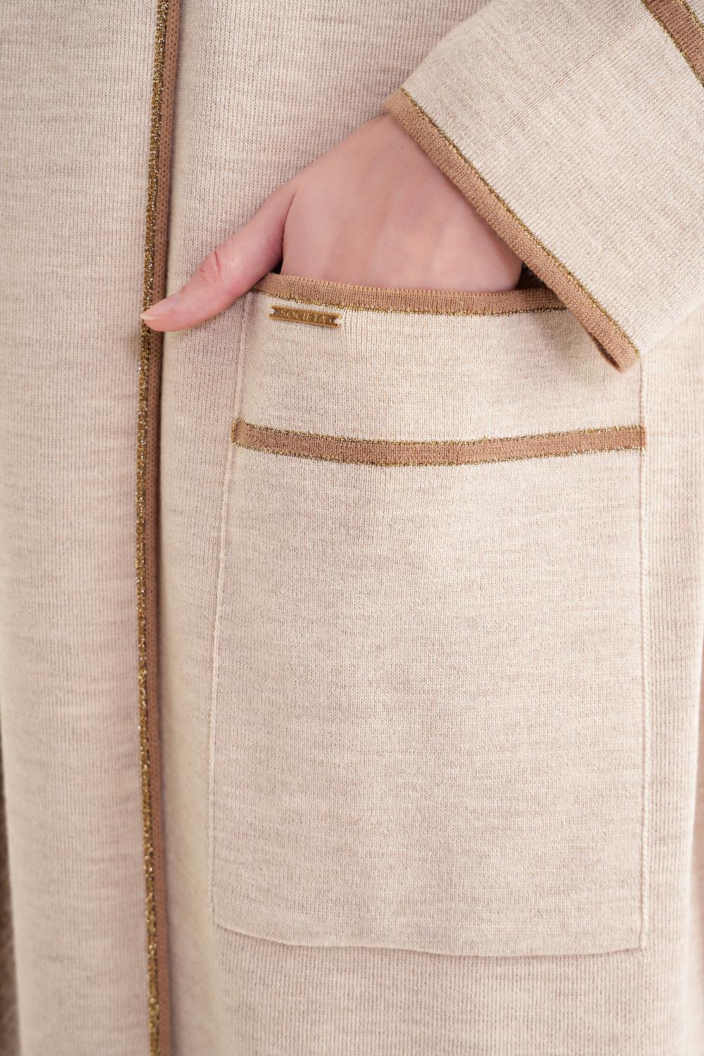 Bej Devetüyü Kemerli uzun yün triko hırka 28874