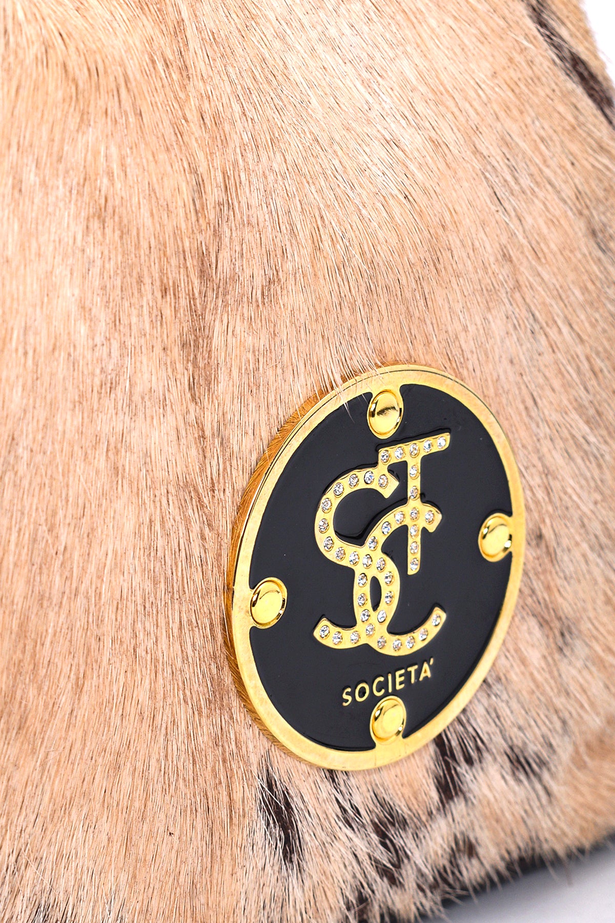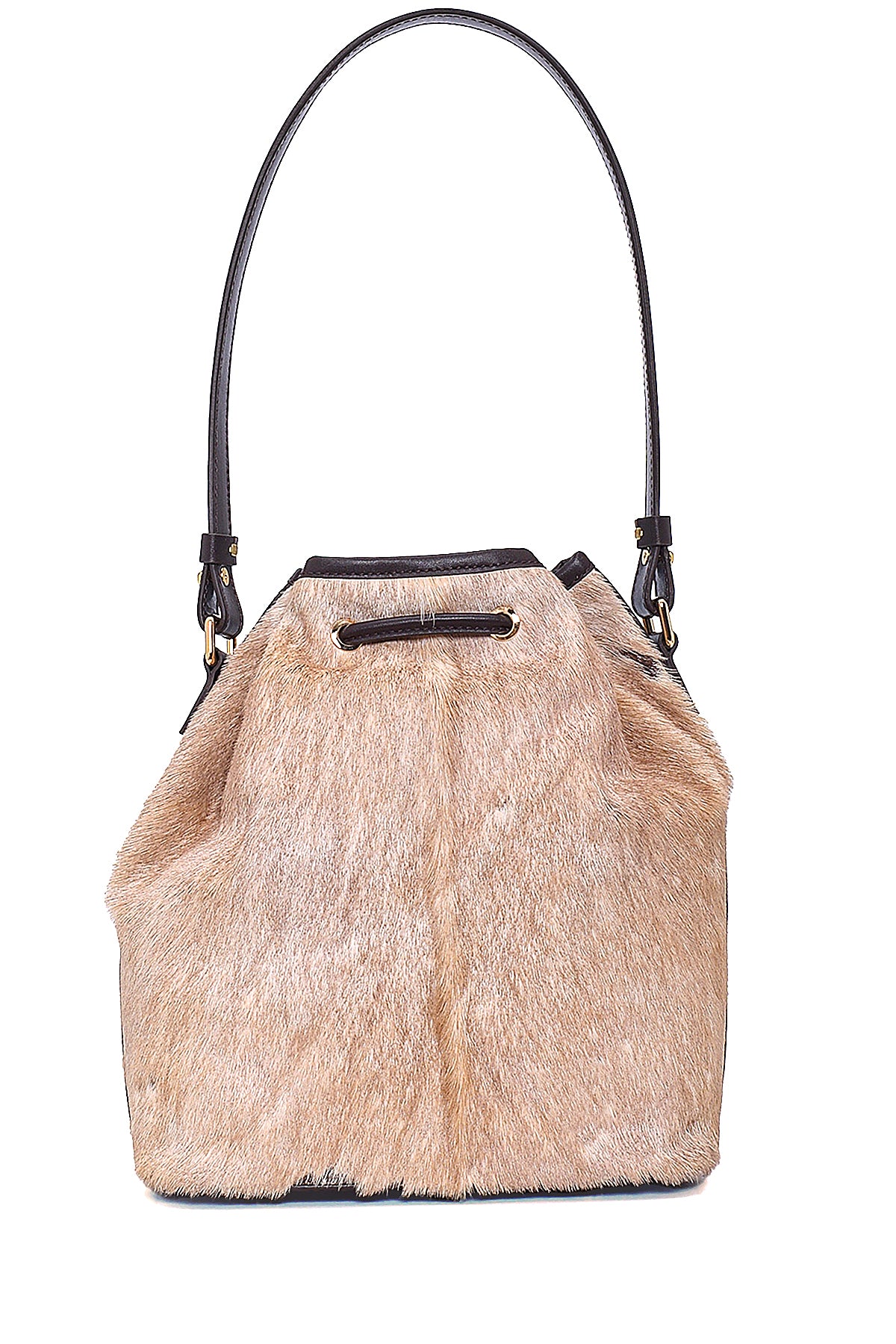 Bej Metal plaka detaylı tüylü deri omuz çantası 23020