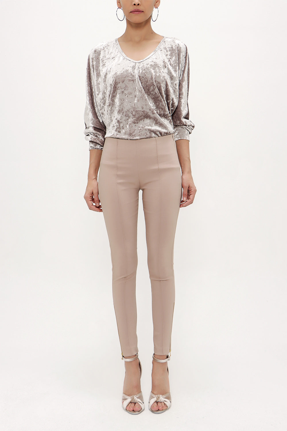 Bej Paçası fermuarlı tayt pantolon 41060
