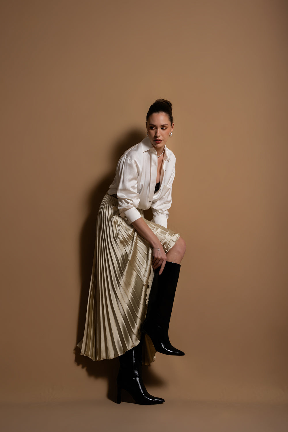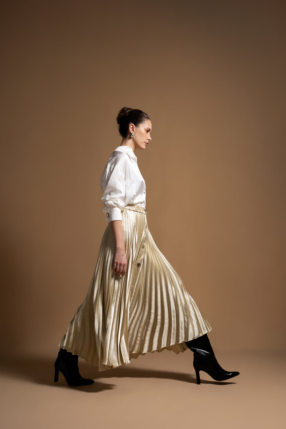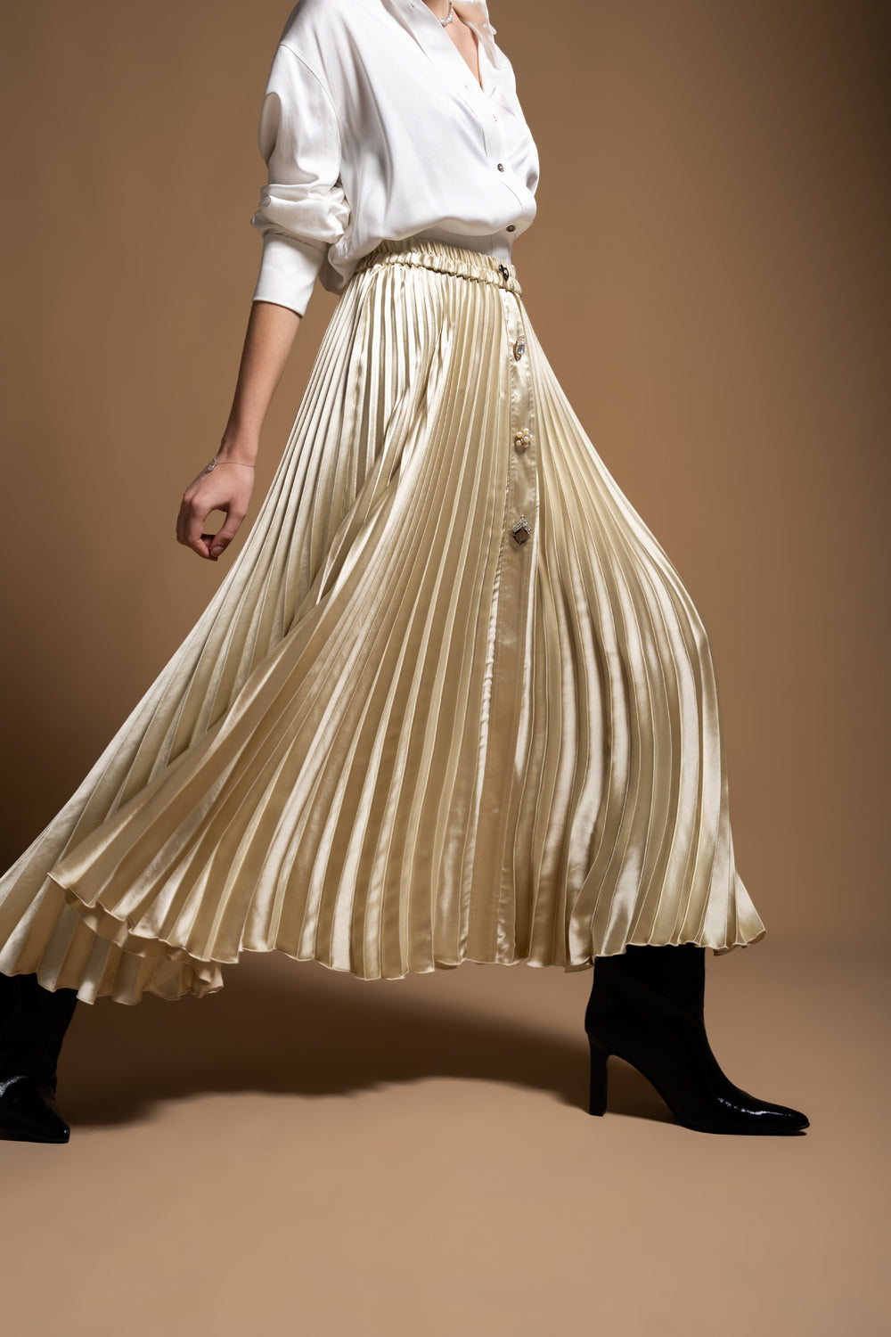 Bej Piliseli ve aksesuar detaylı uzun etek 81256