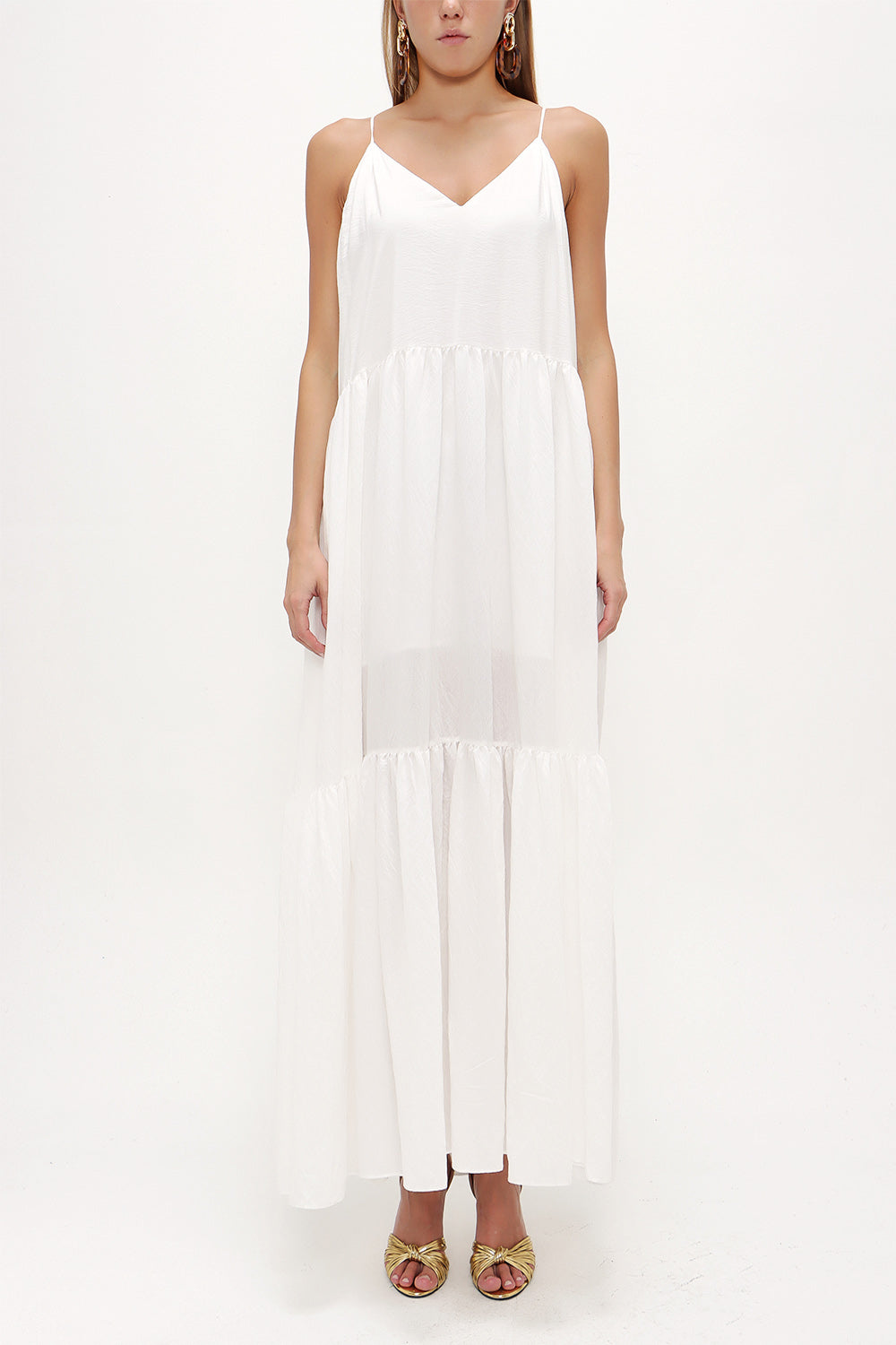 Beyaz Askılı bol kesim elbise 93471