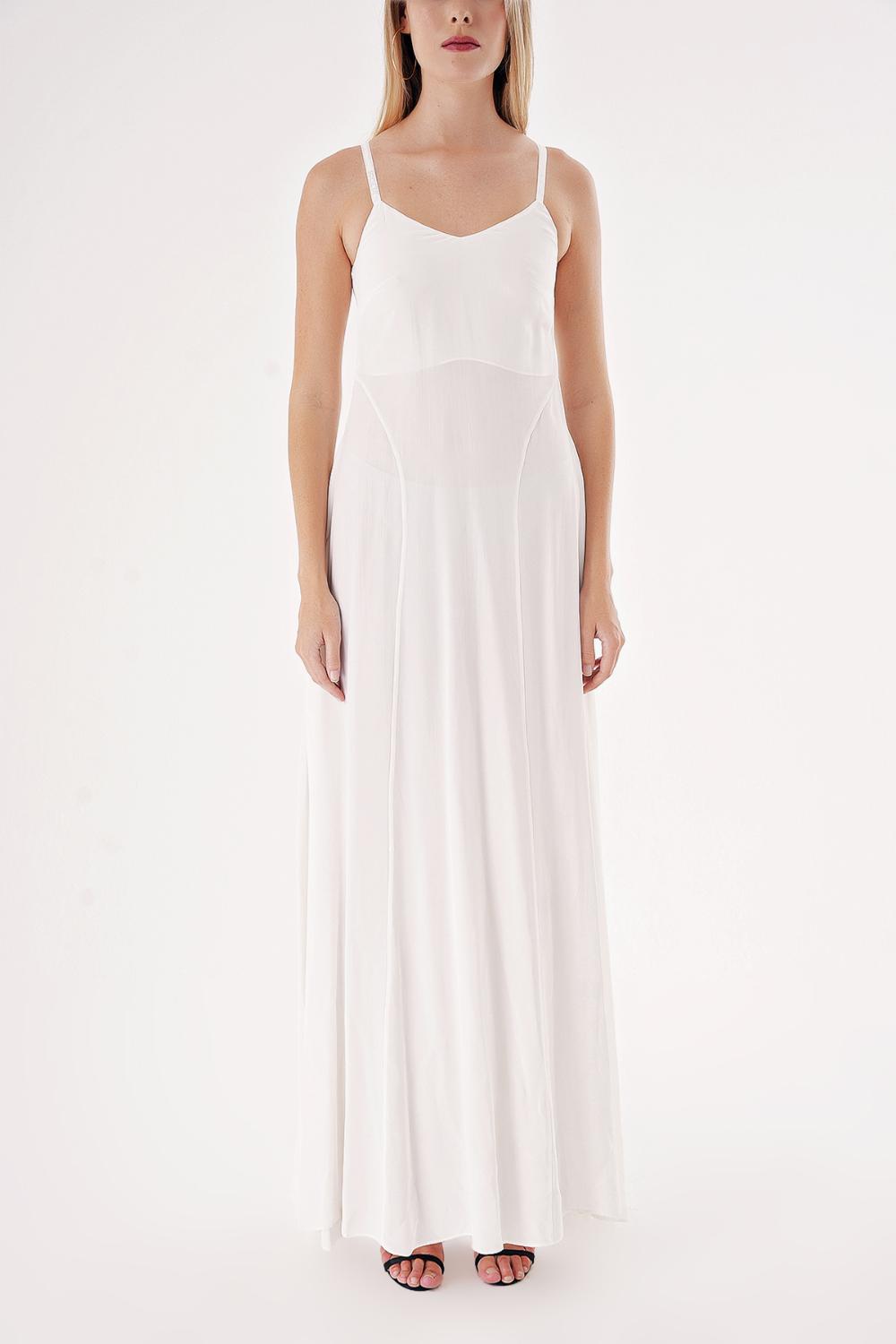 Beyaz Askılı taş detaylı rahat godeli elbise 94457
