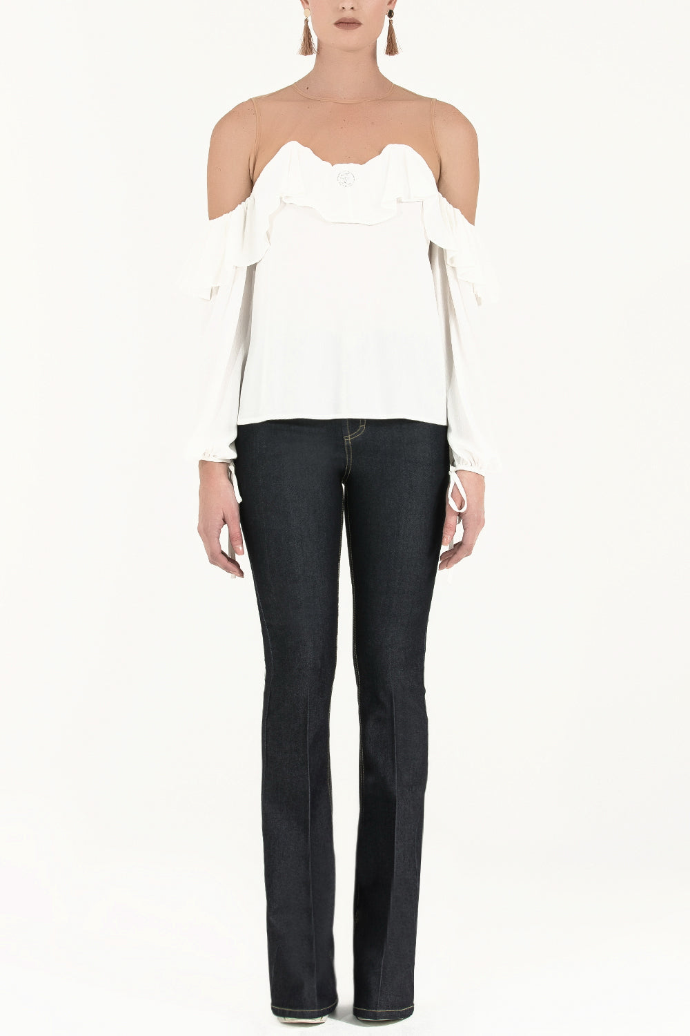 Beyaz Bağcıklı omuzu açık bluz 19669