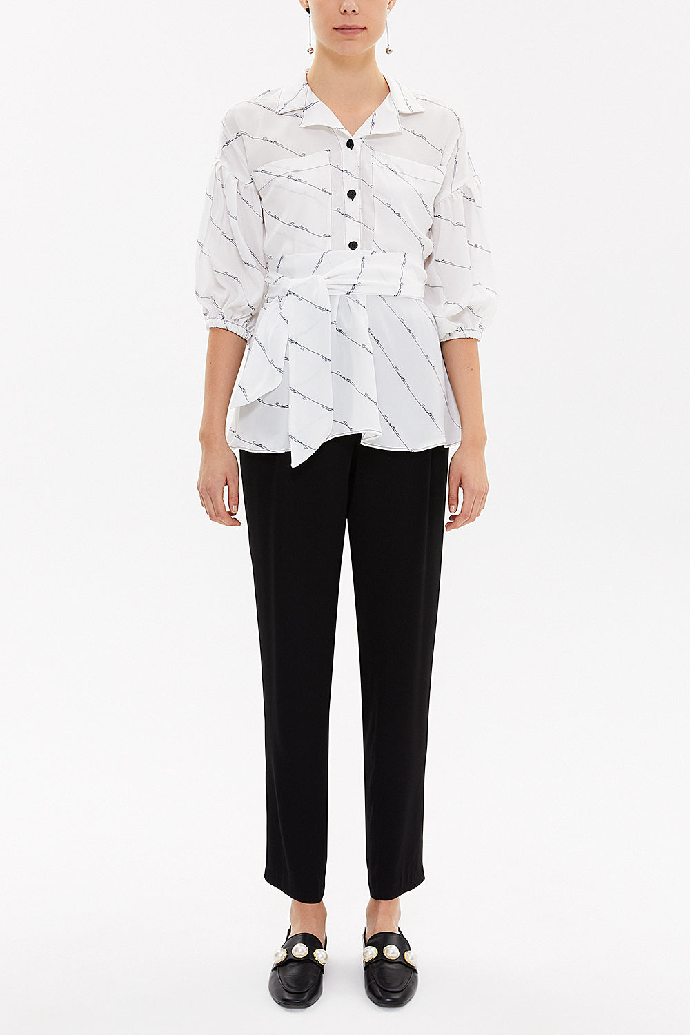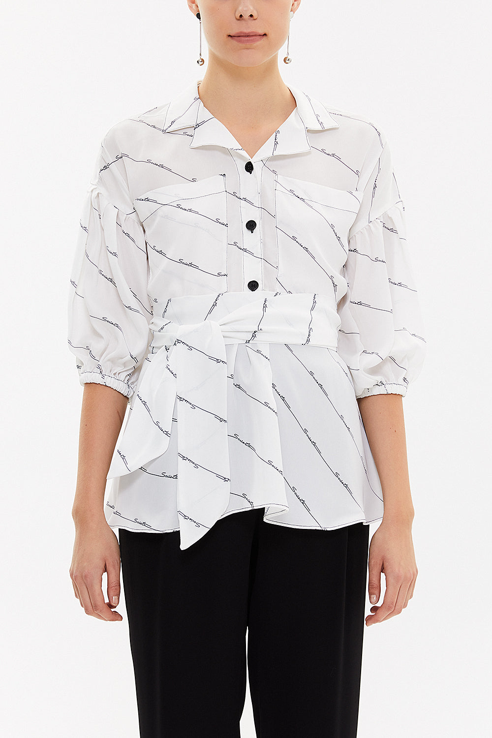Beyaz Balon kollu bol kesim bluz 19761