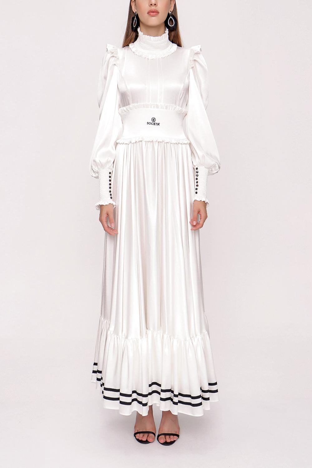Beyaz Büzgülü şerit detaylı uzun elbise 93999