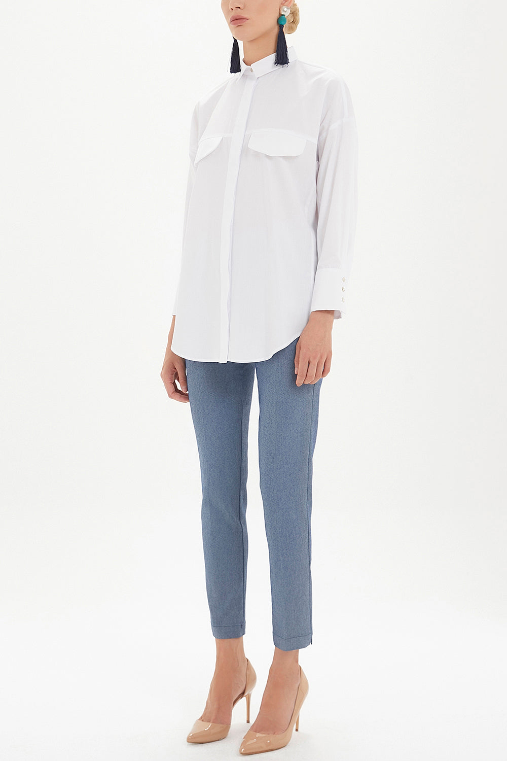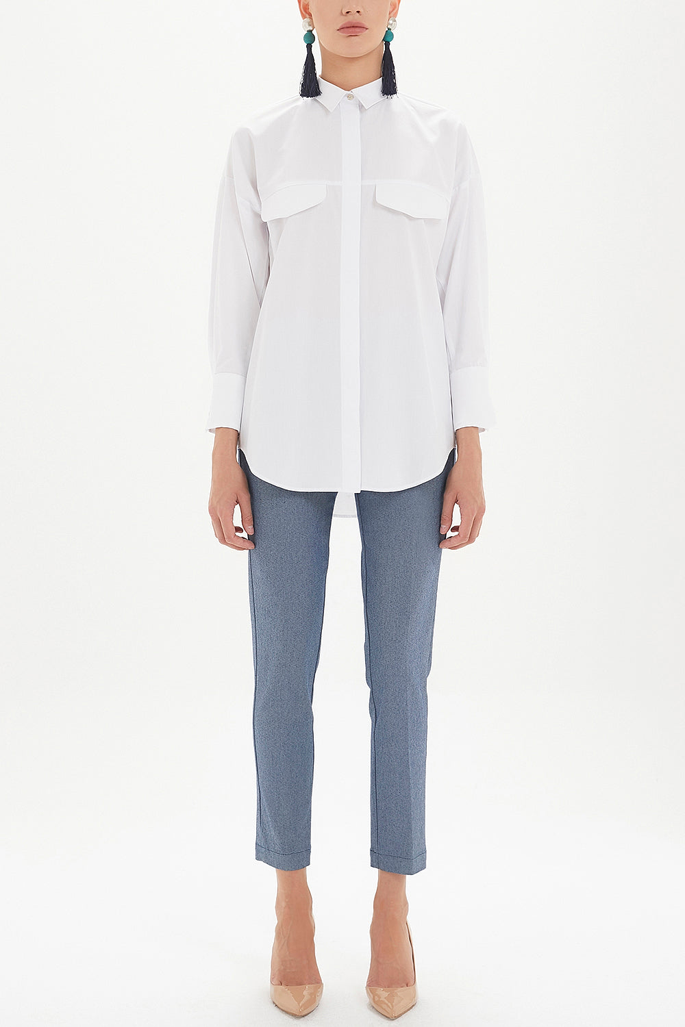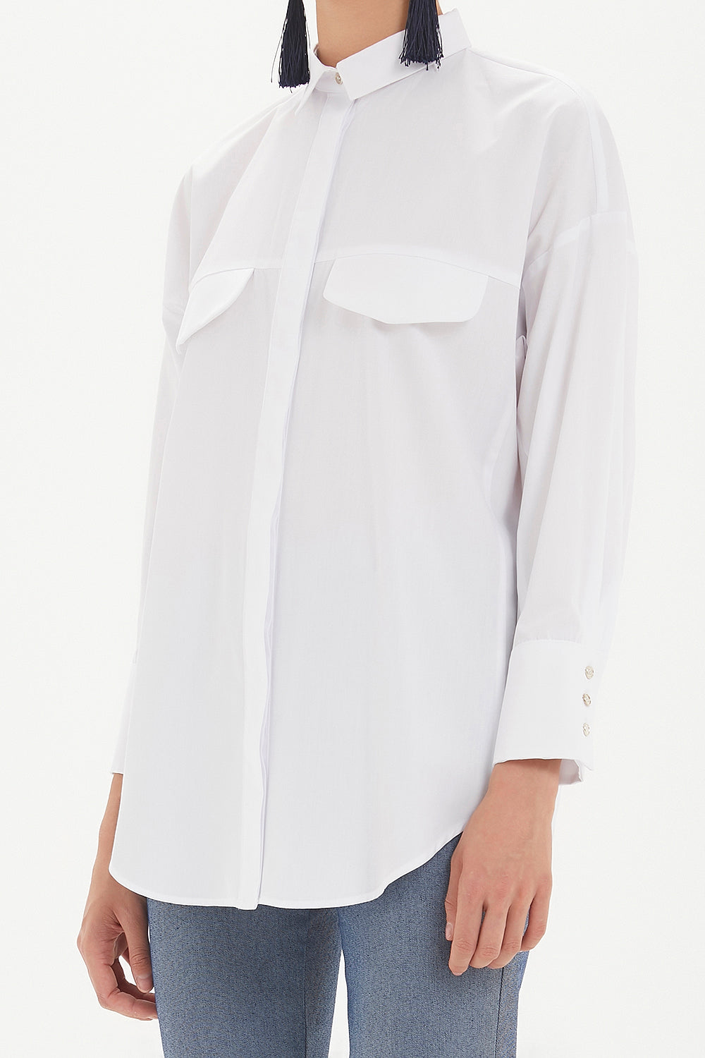 Beyaz Cepli bol kesim gömlek 10689