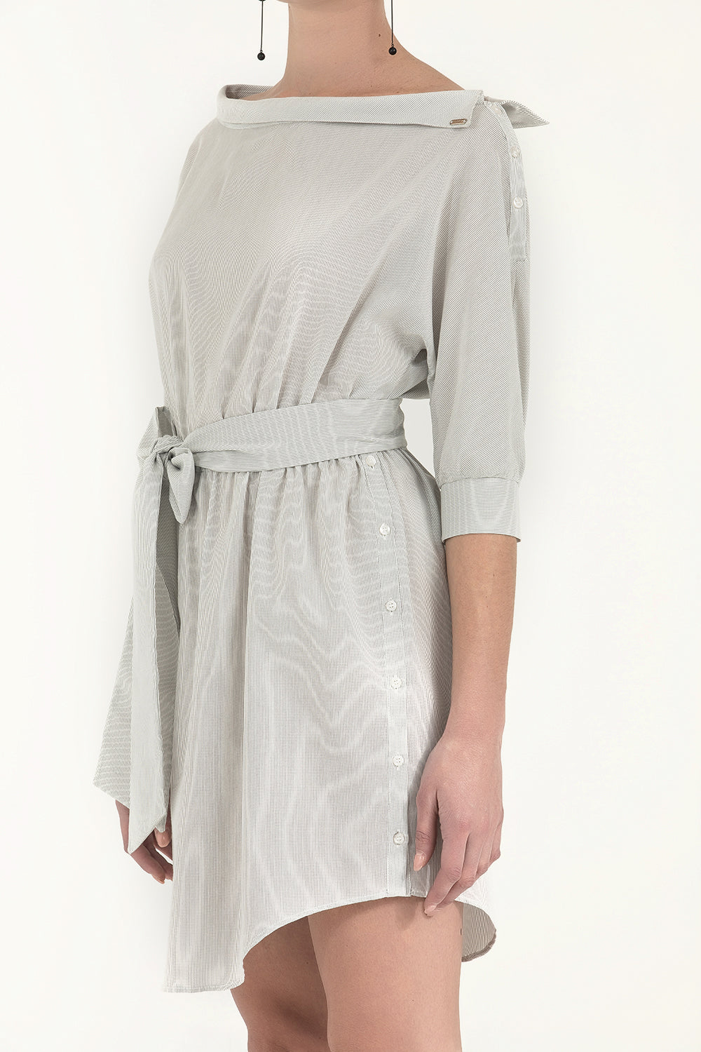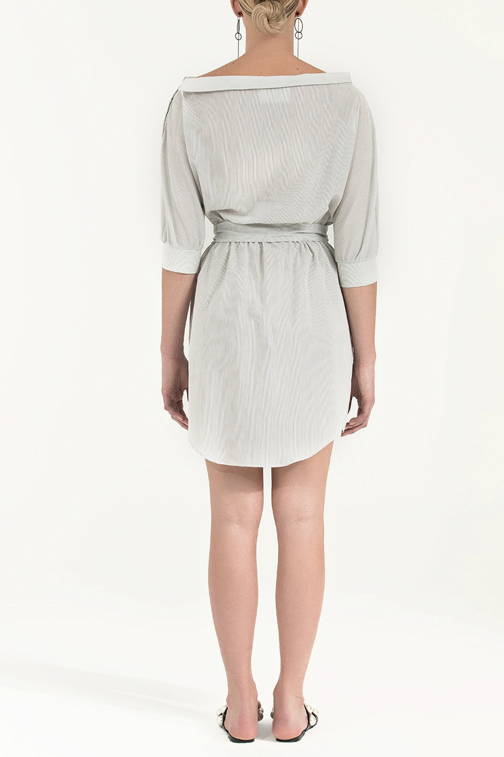 Beyaz Çizgili Çizgili pamuk mini elbise 92053