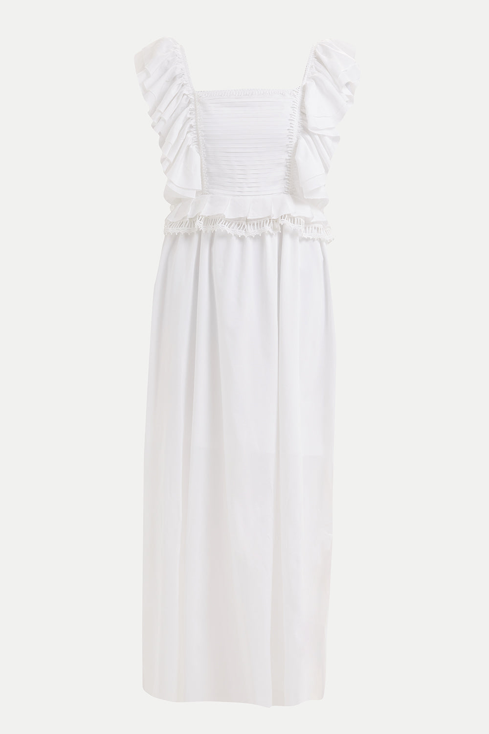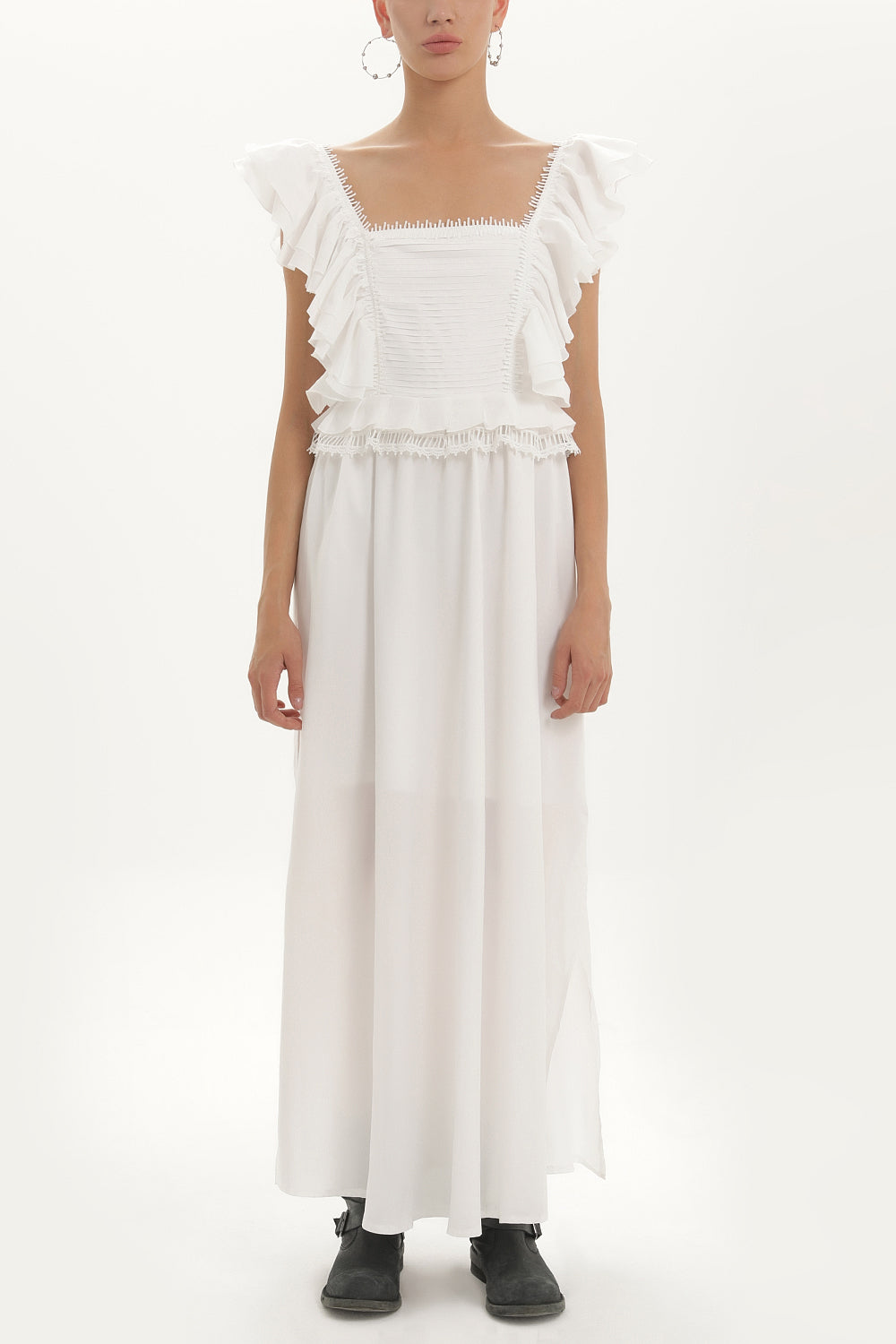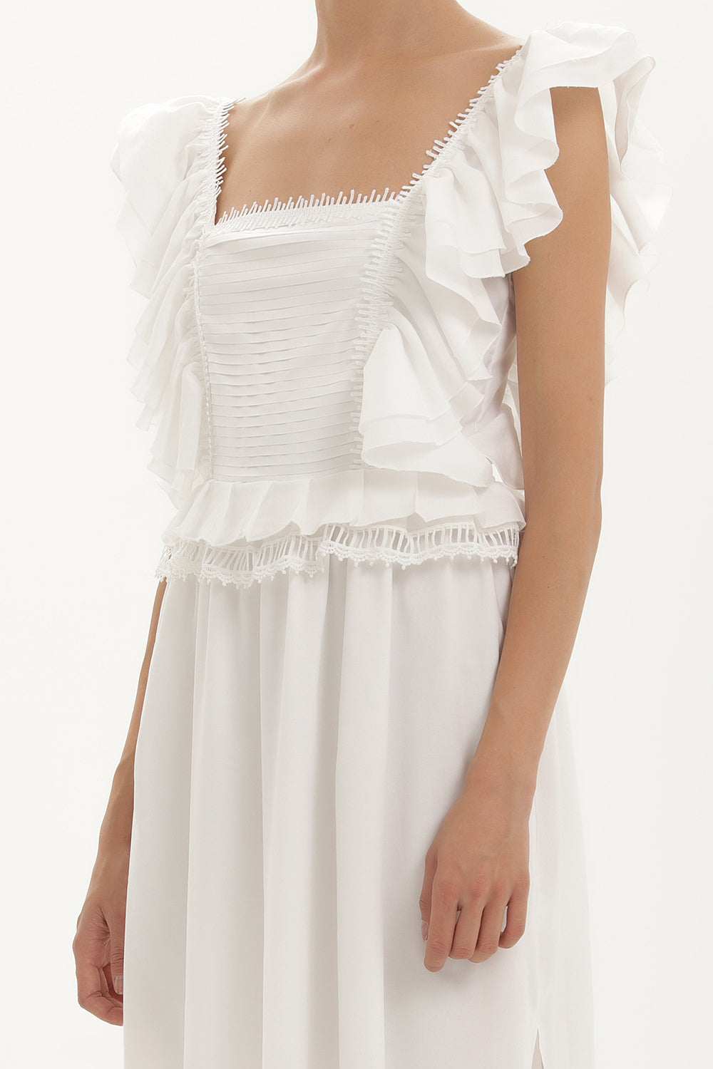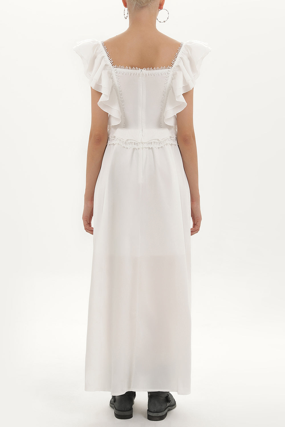 Beyaz Dantelli ve fırfırlı uzun elbise 92328
