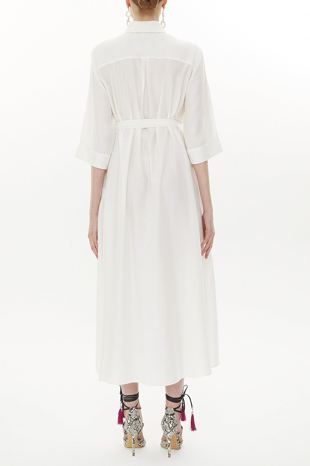 Beyaz Düğme detaylı bol kesim uzun elbise 93372