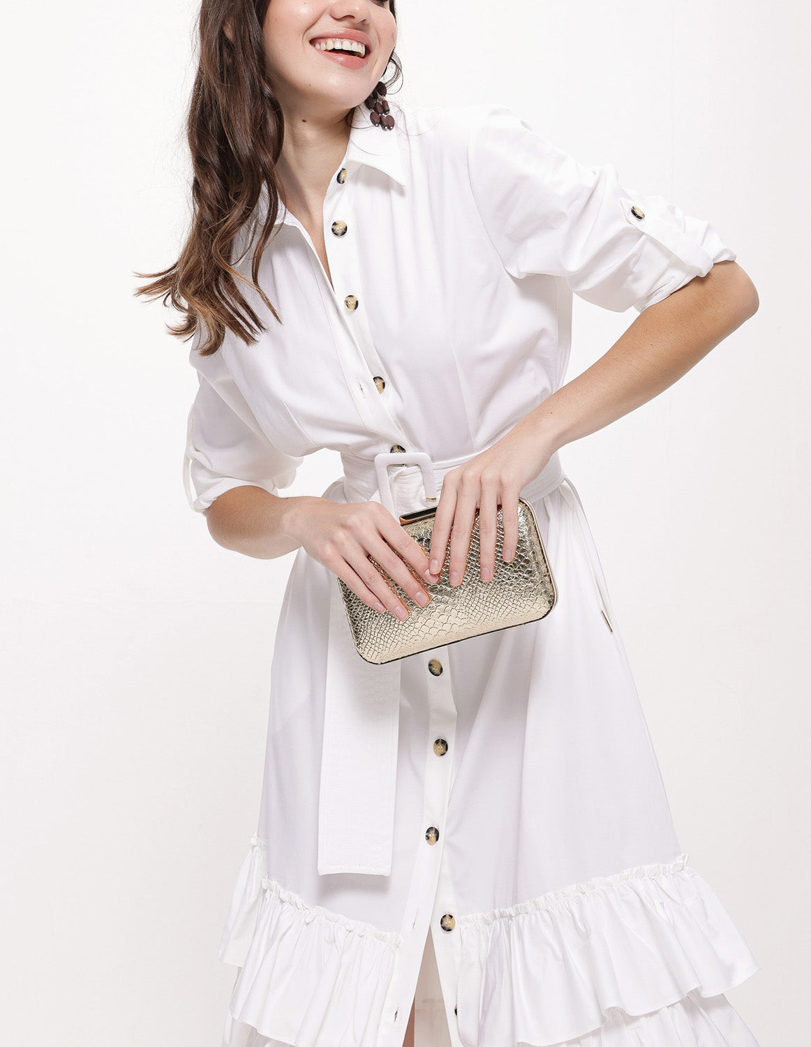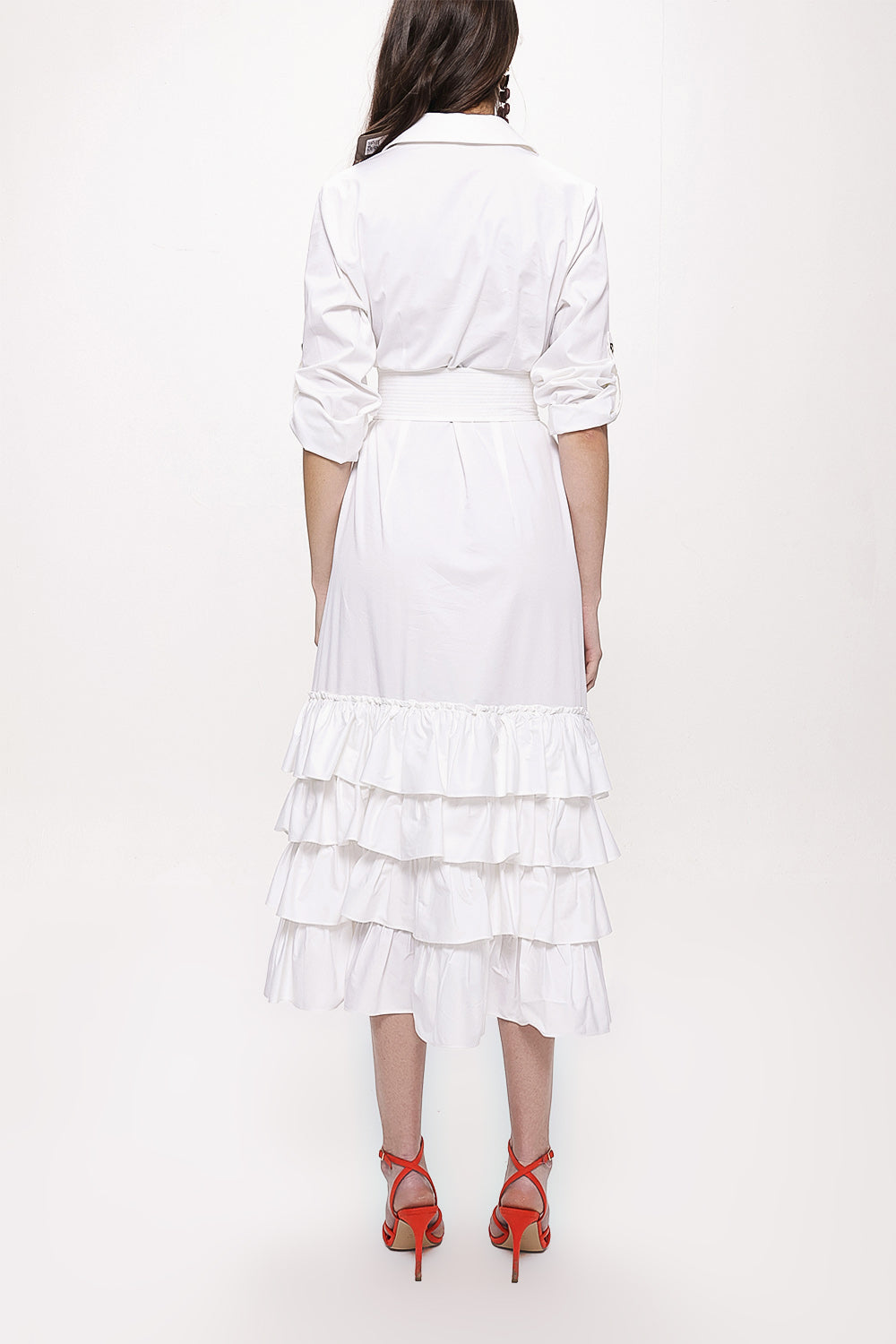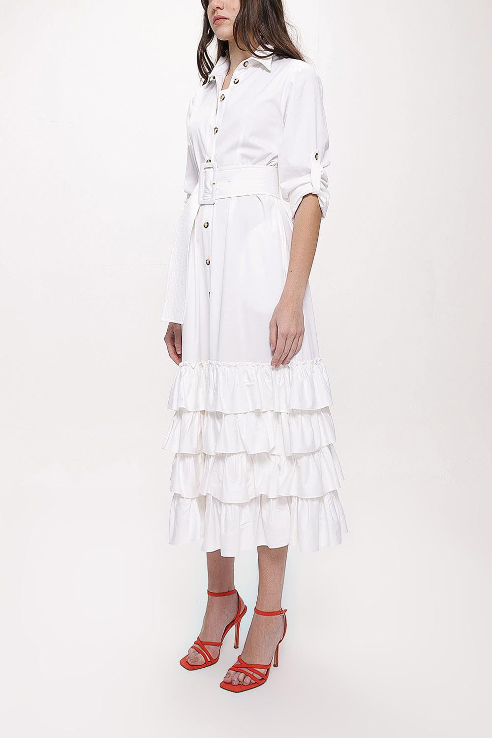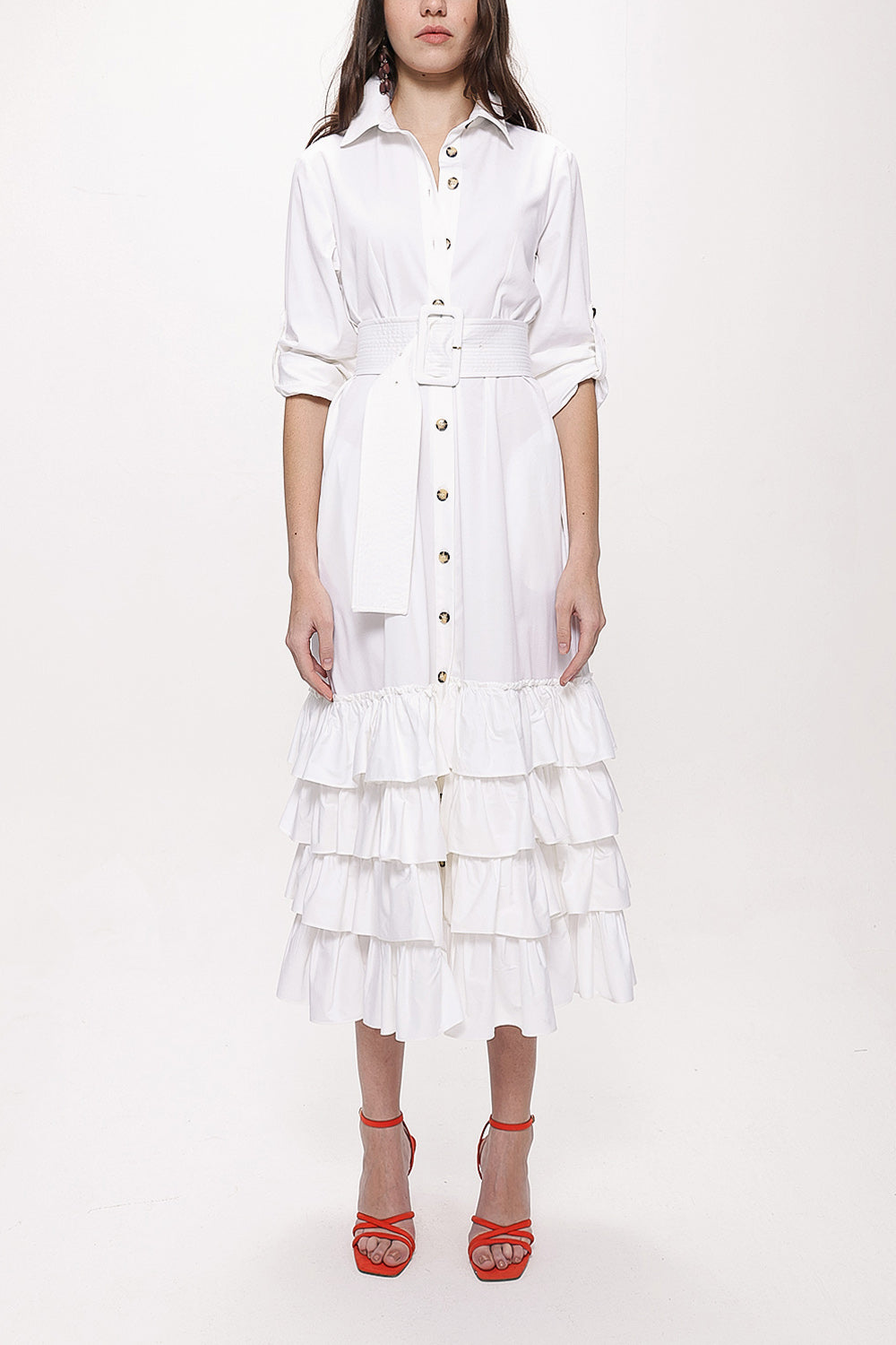 Beyaz Fırfırlı uzun gömlek elbise 93979