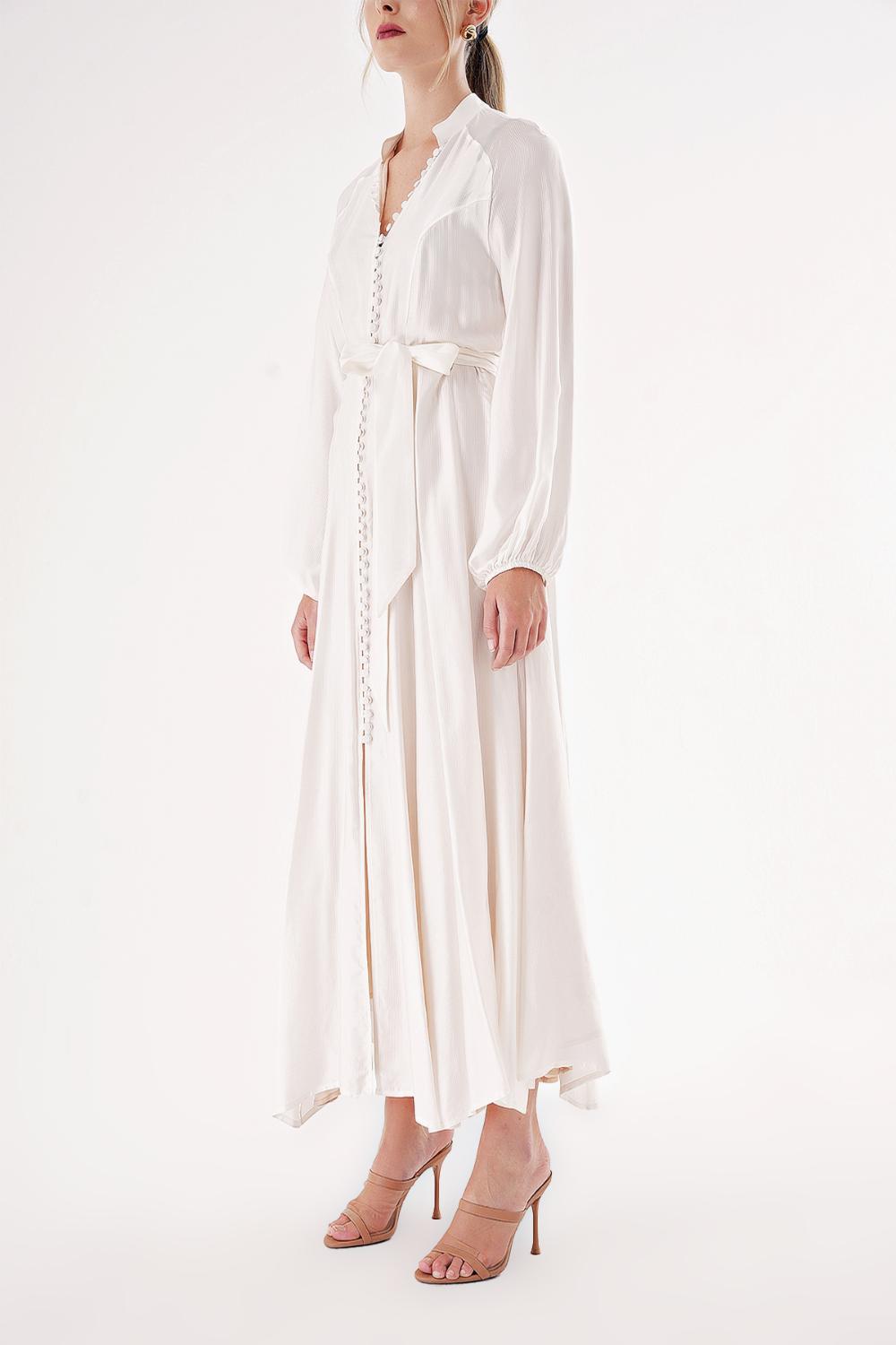 Beyaz Hakim yaka balon kollu düğmeli elbise 94459