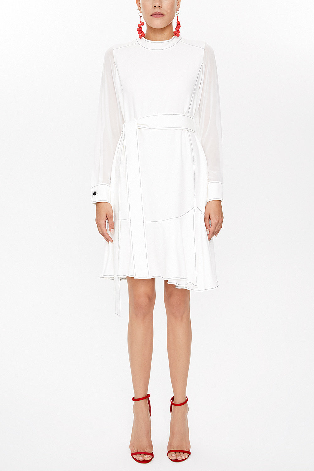 Beyaz Hakim yaka mini elbise 93035