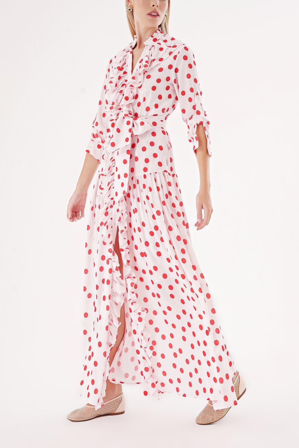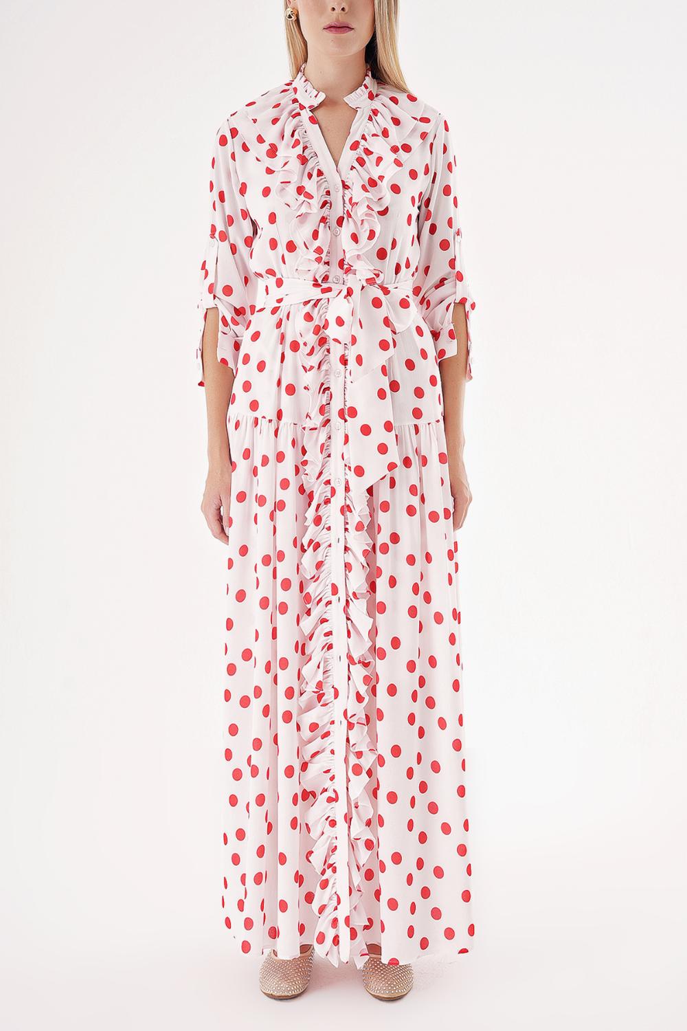 Beyaz Kırmızı Fırfırlı uzun gömlek elbise 94470