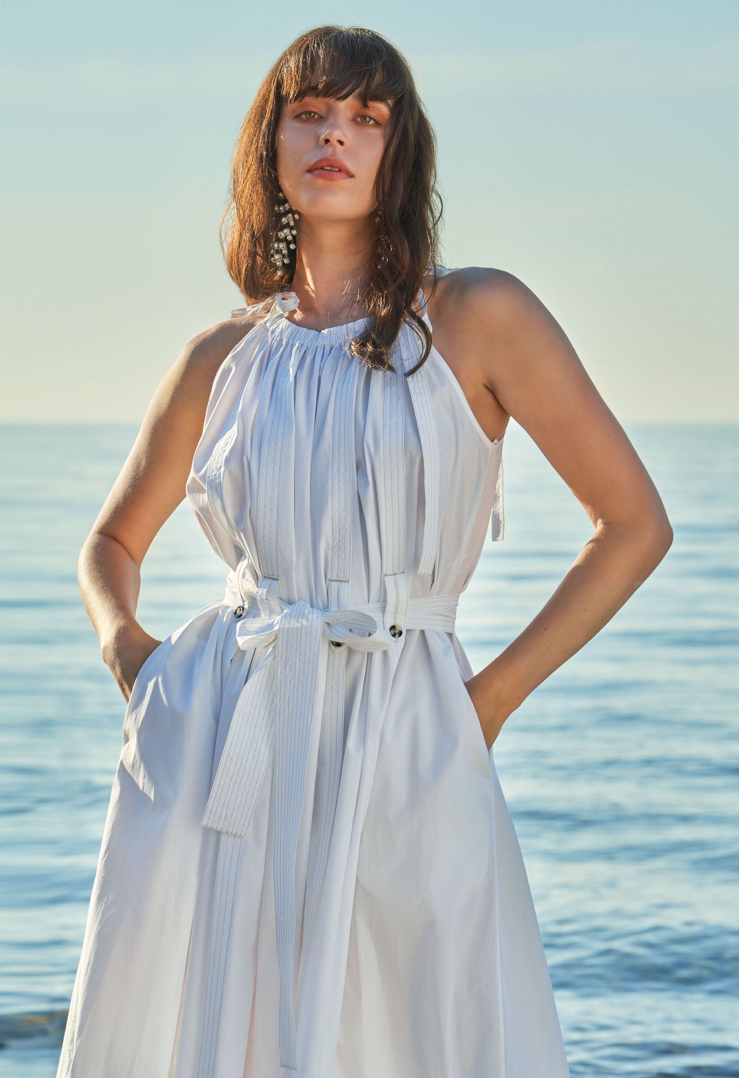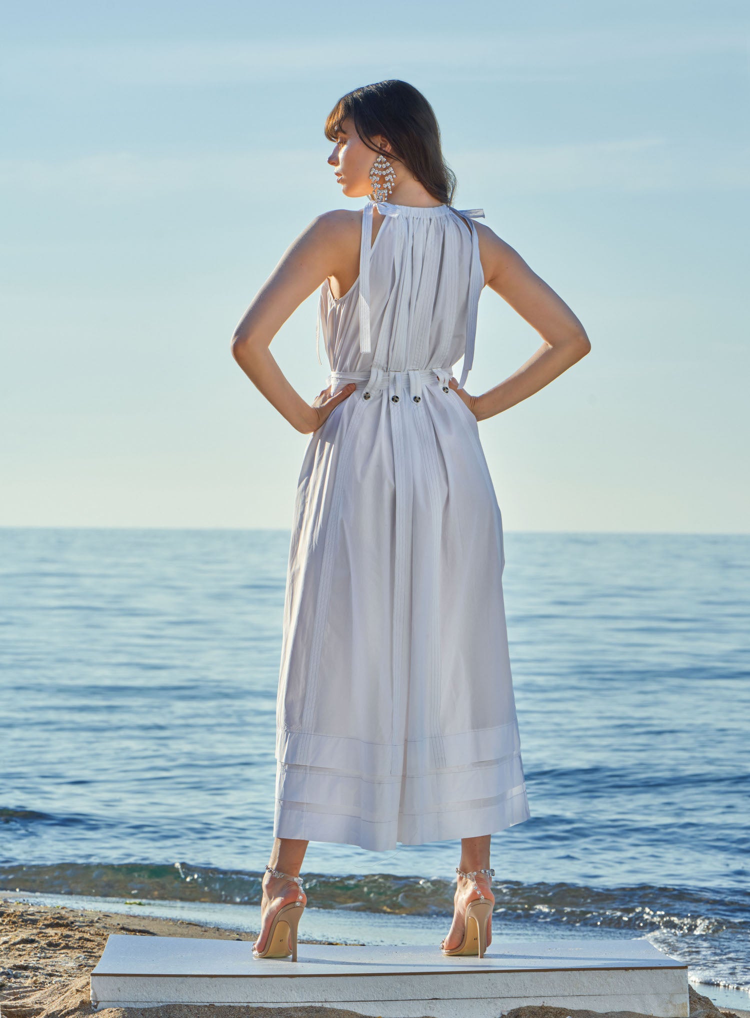 Beyaz Kolsuz  bol kesim poplin elbise 93542