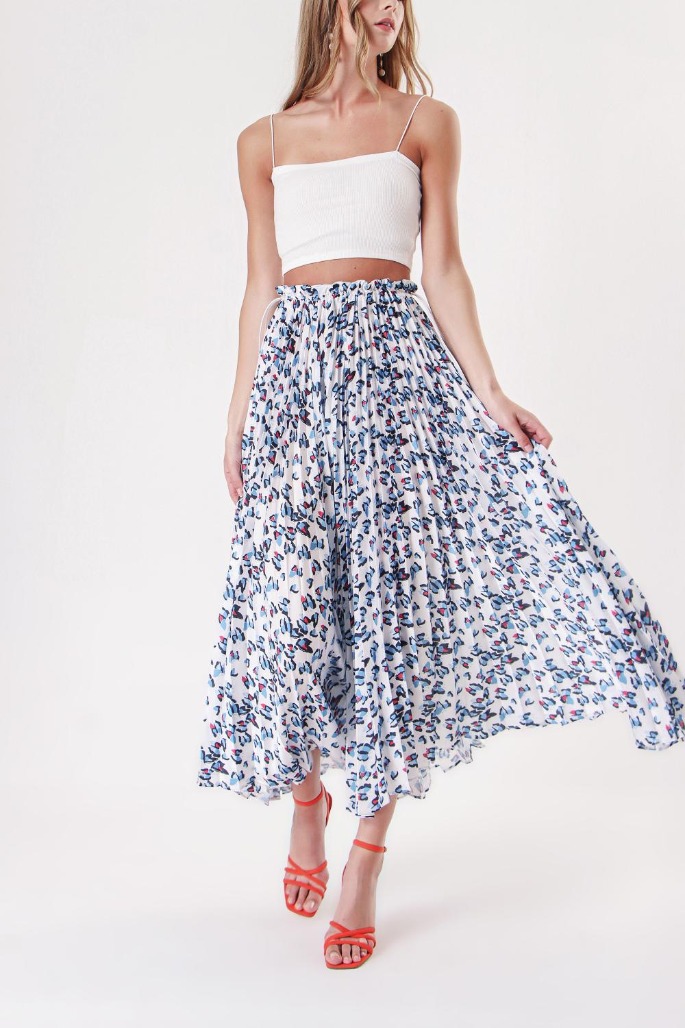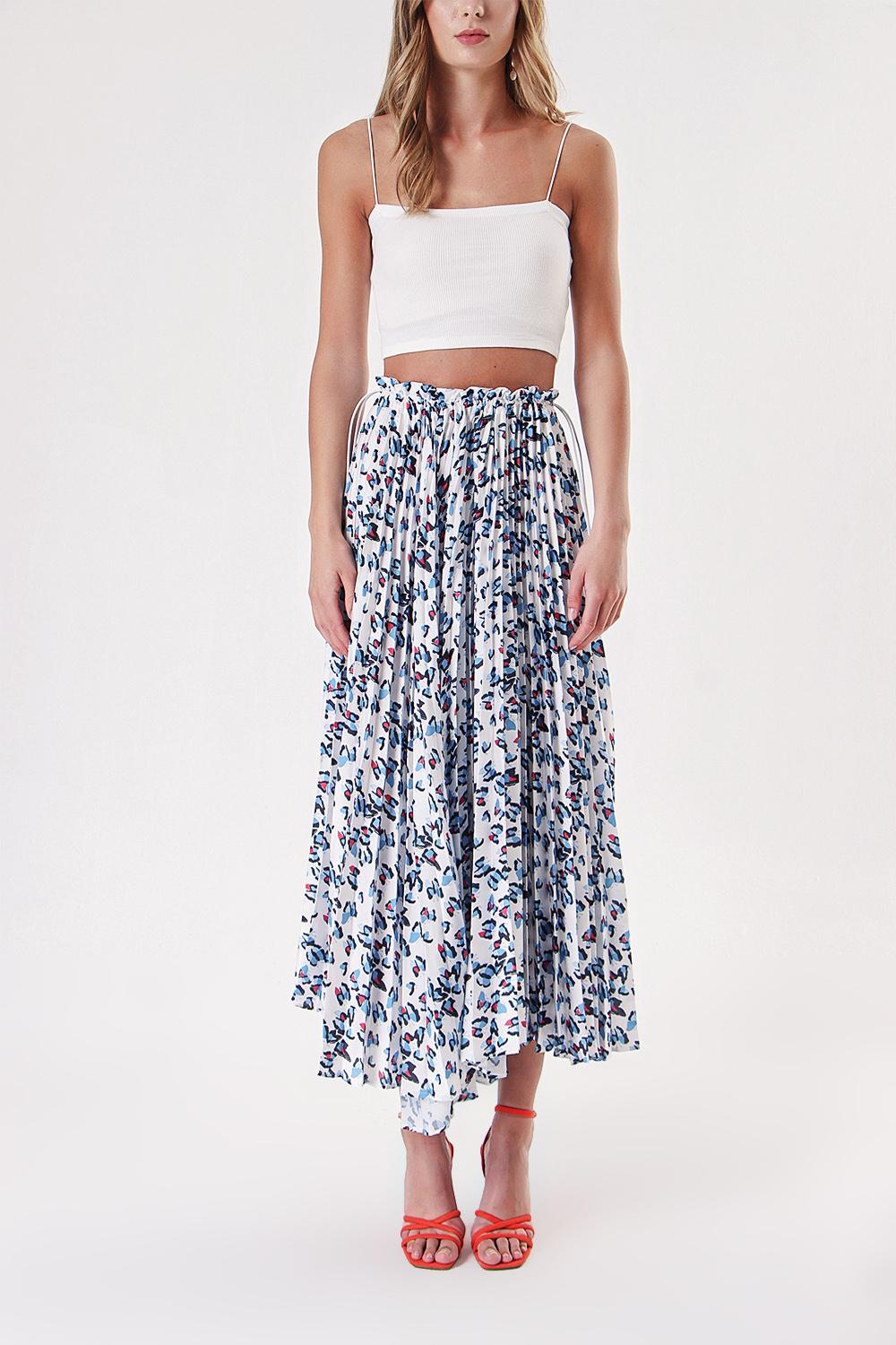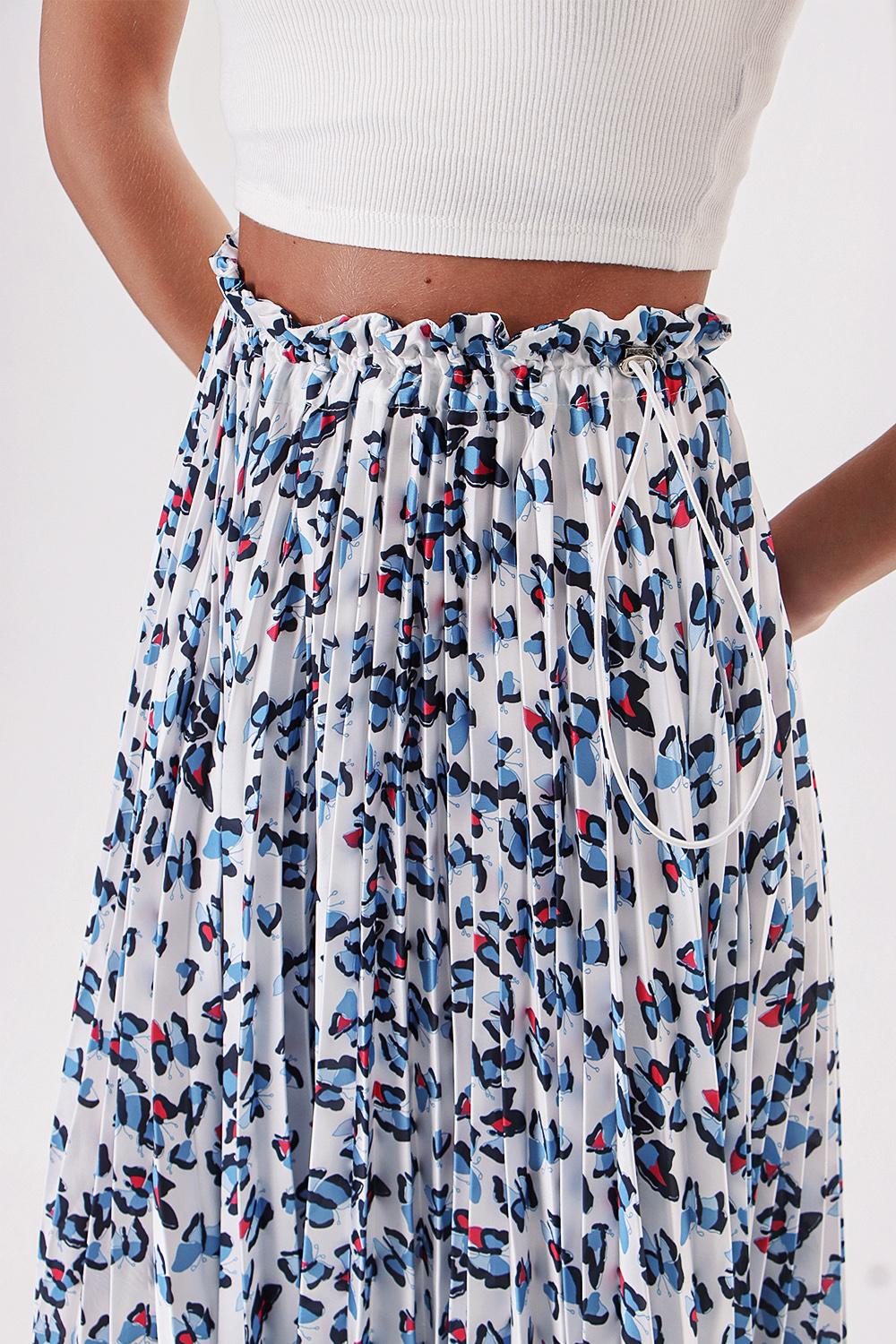 Beyaz Mavi Beli lastikli piliseli etek 81218
