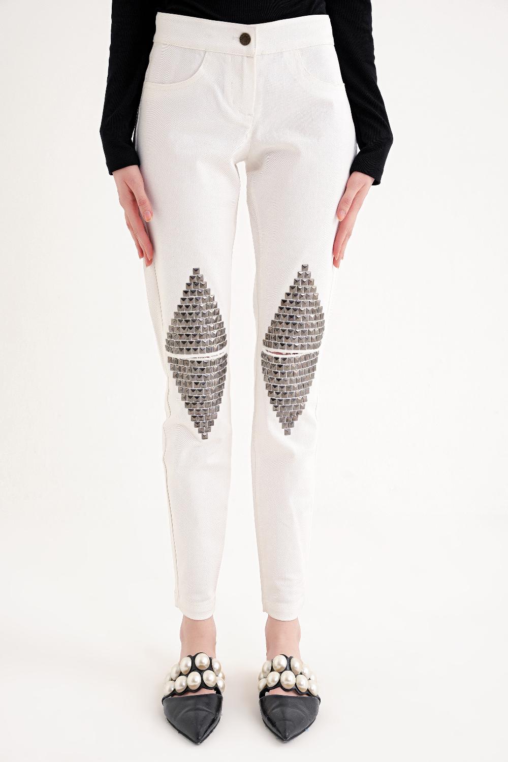 Beyaz Metal yapıştırmalı cep pantolon 41247