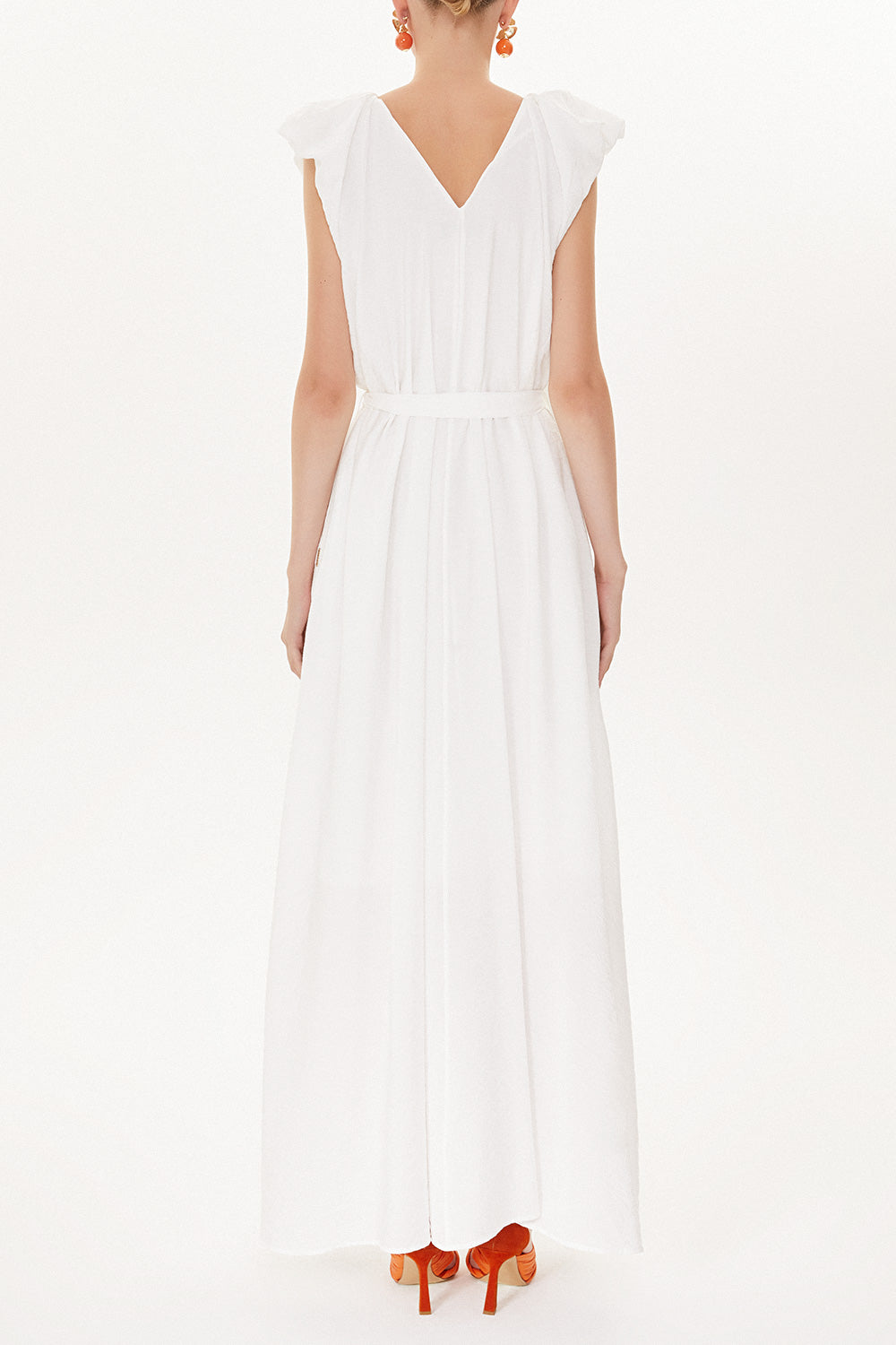 Beyaz Omuzları büzgülü salaş elbise 93468