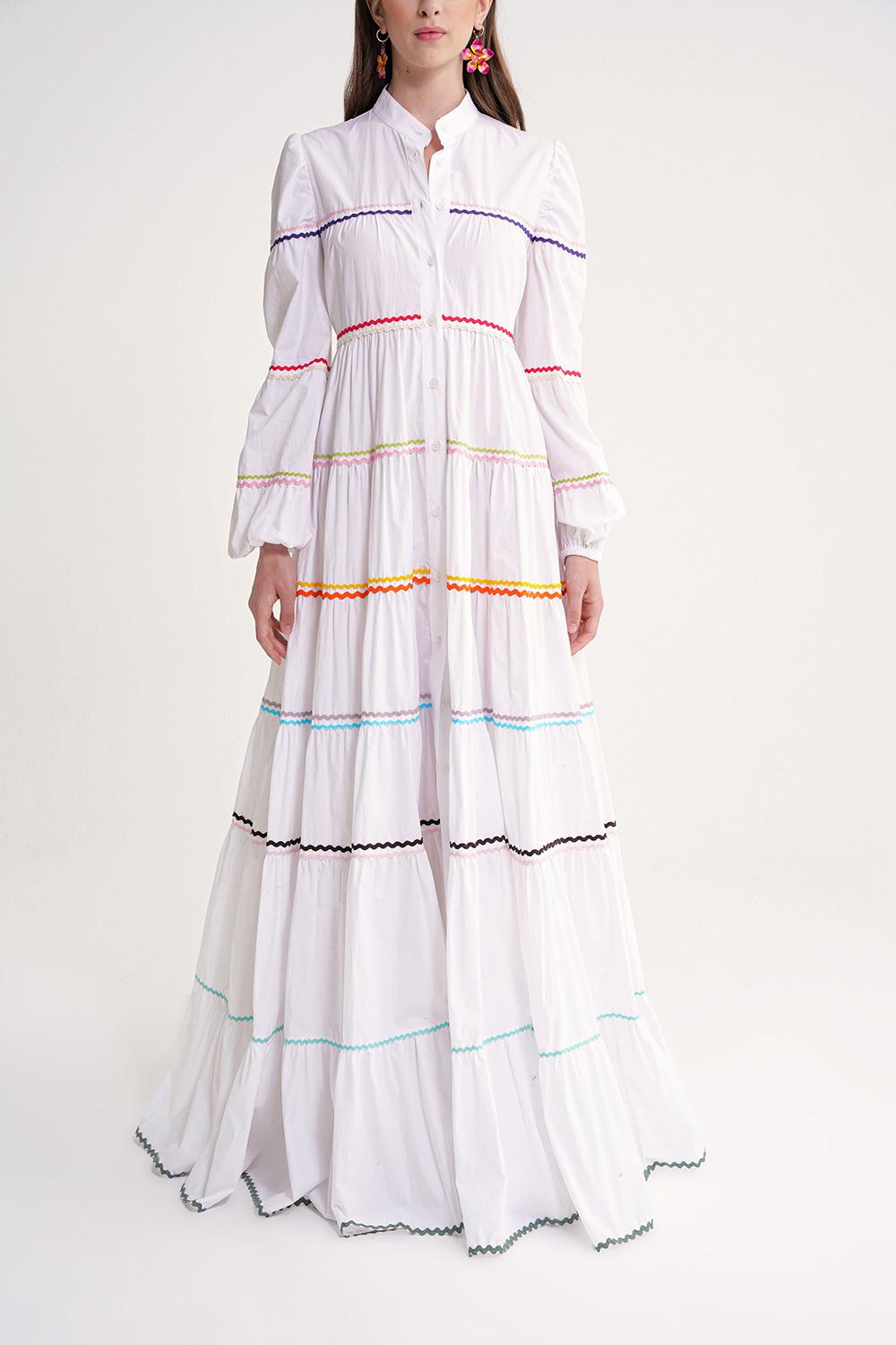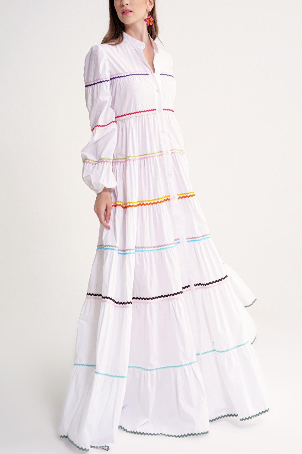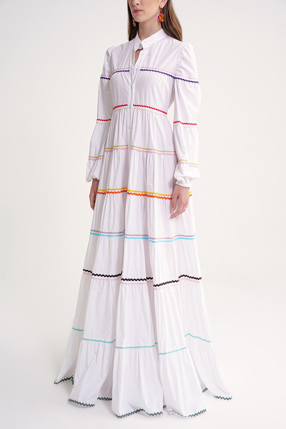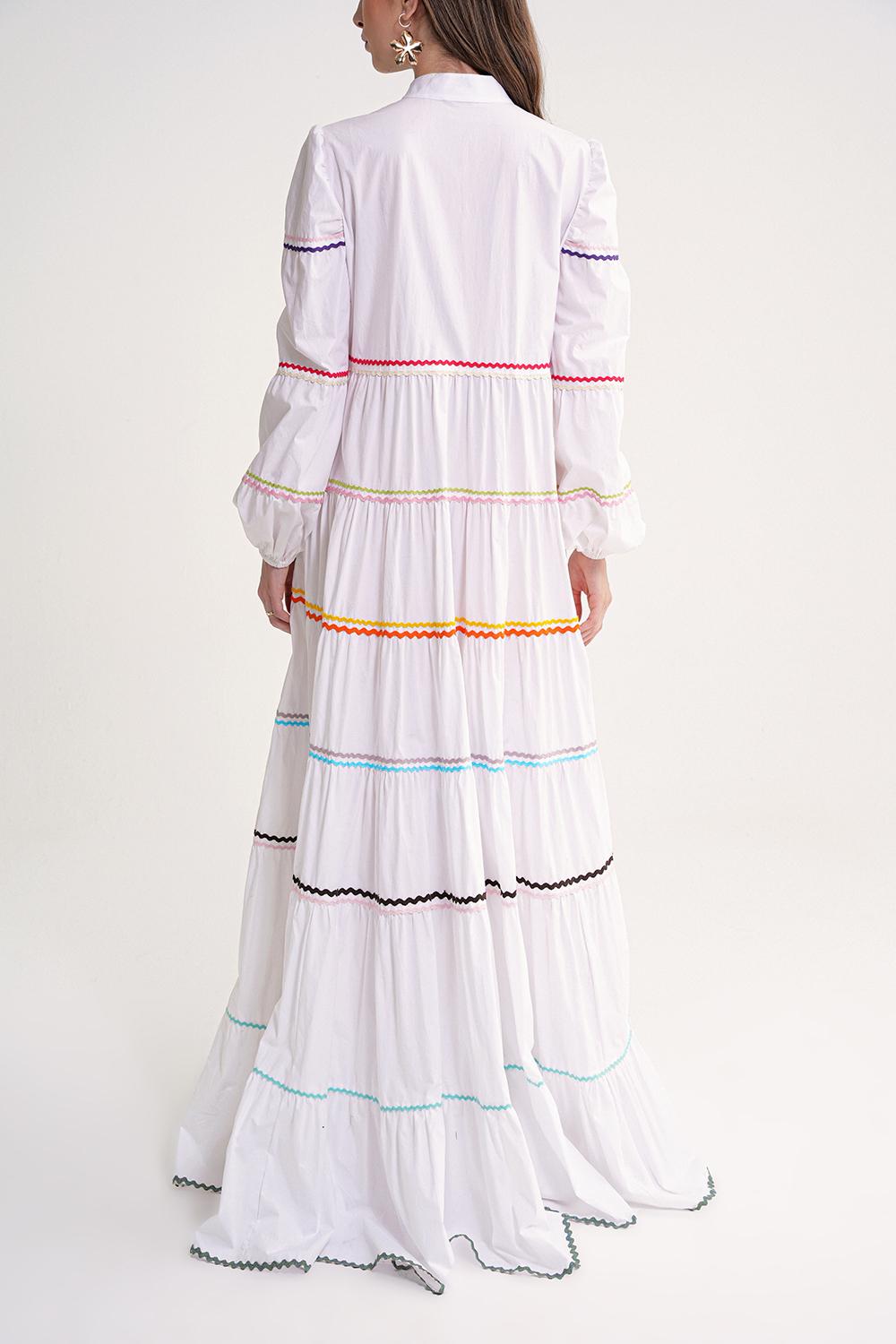 Beyaz Renkli aksesuar detaylı bol kesim elbise 94655