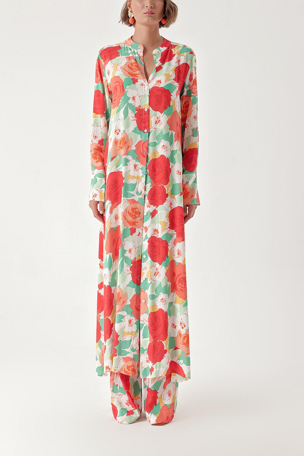 Beyaz Renkli Çiçekli Beli lastikli pantolonlu ikili takım 12322