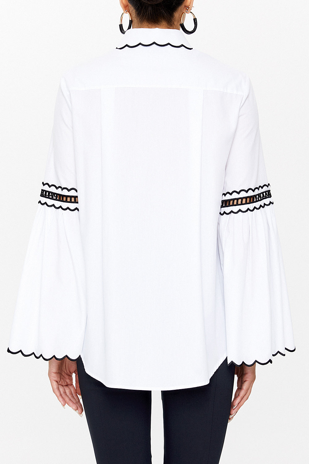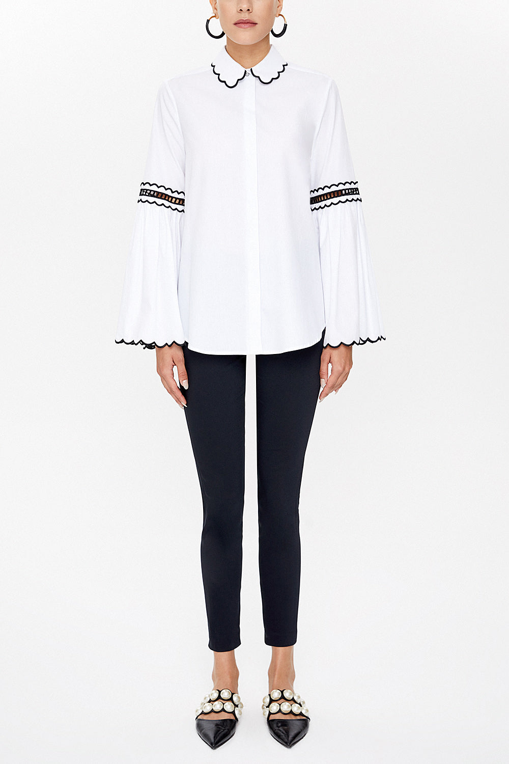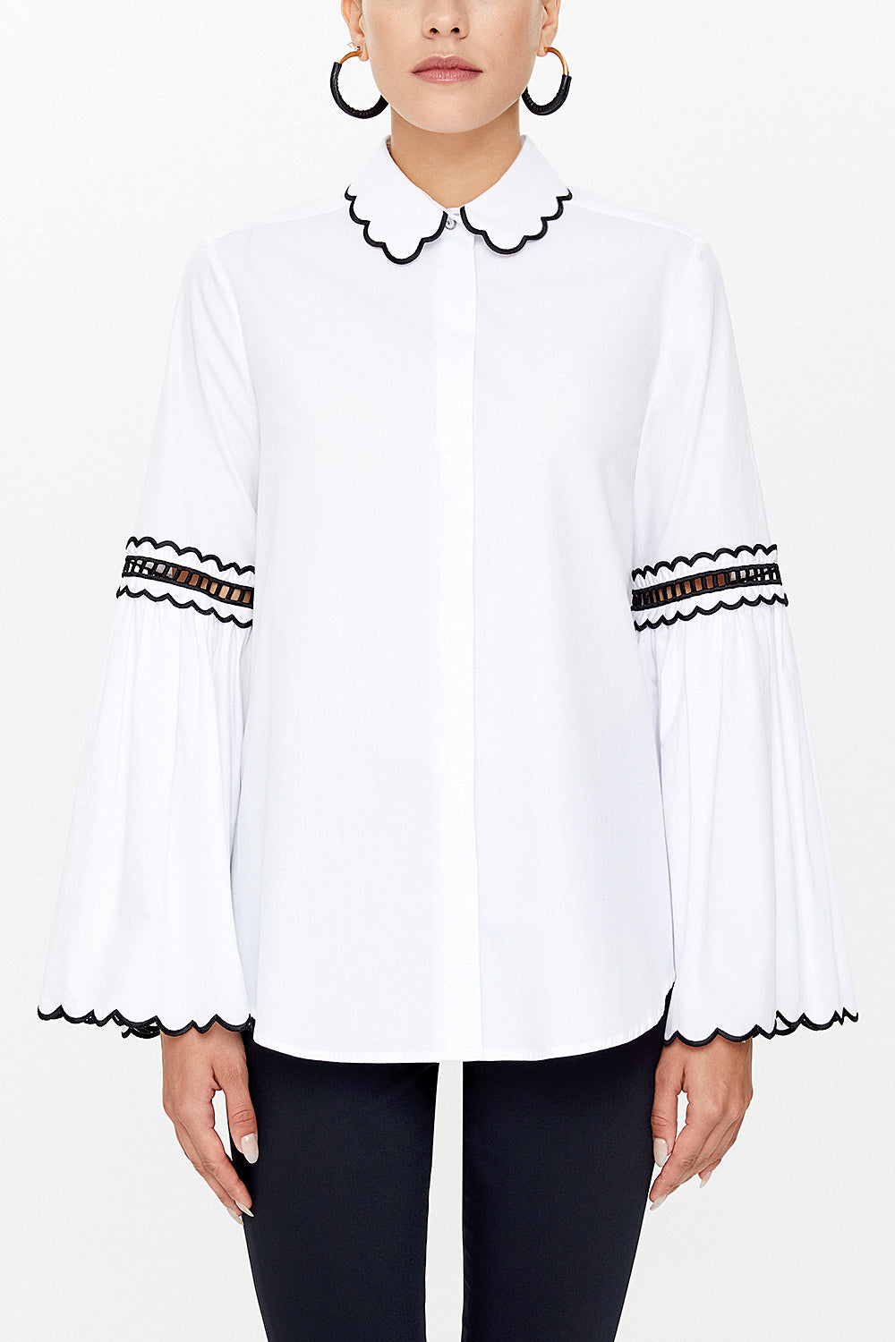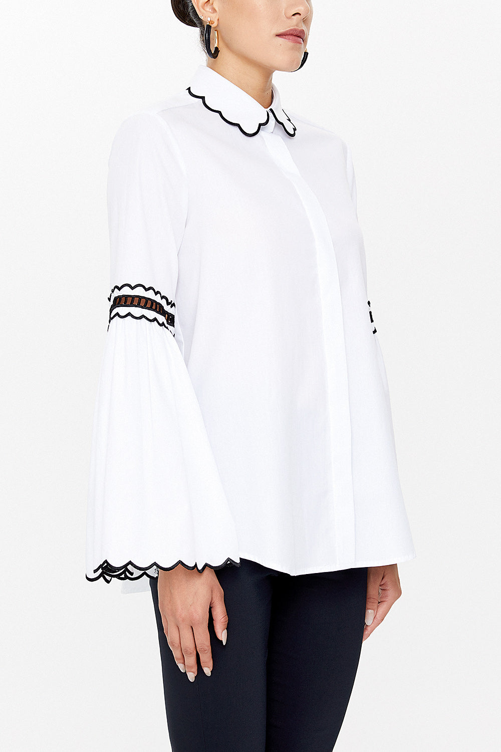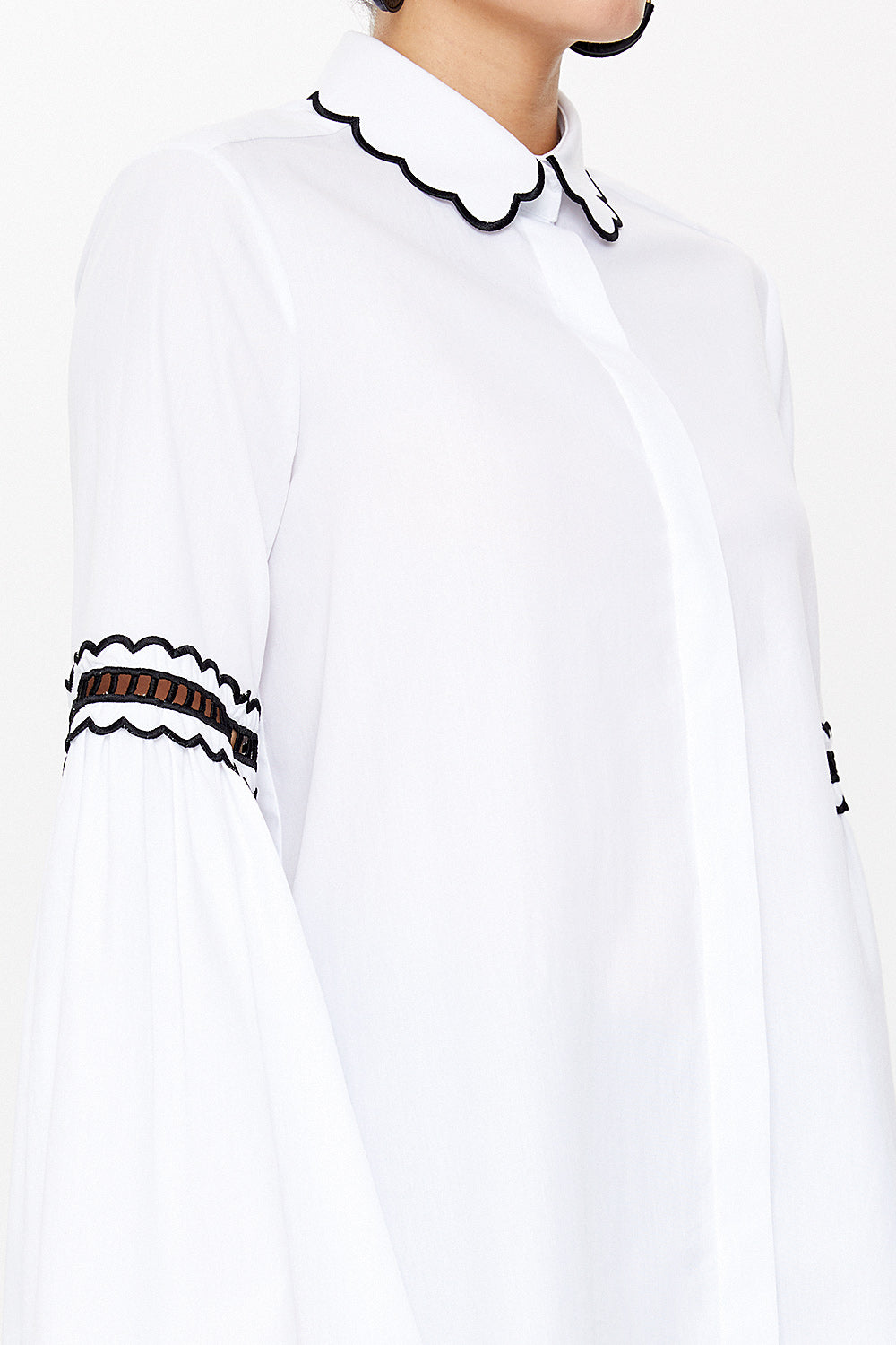 Beyaz Siyah Nakış detaylı poplın gömlek 10692