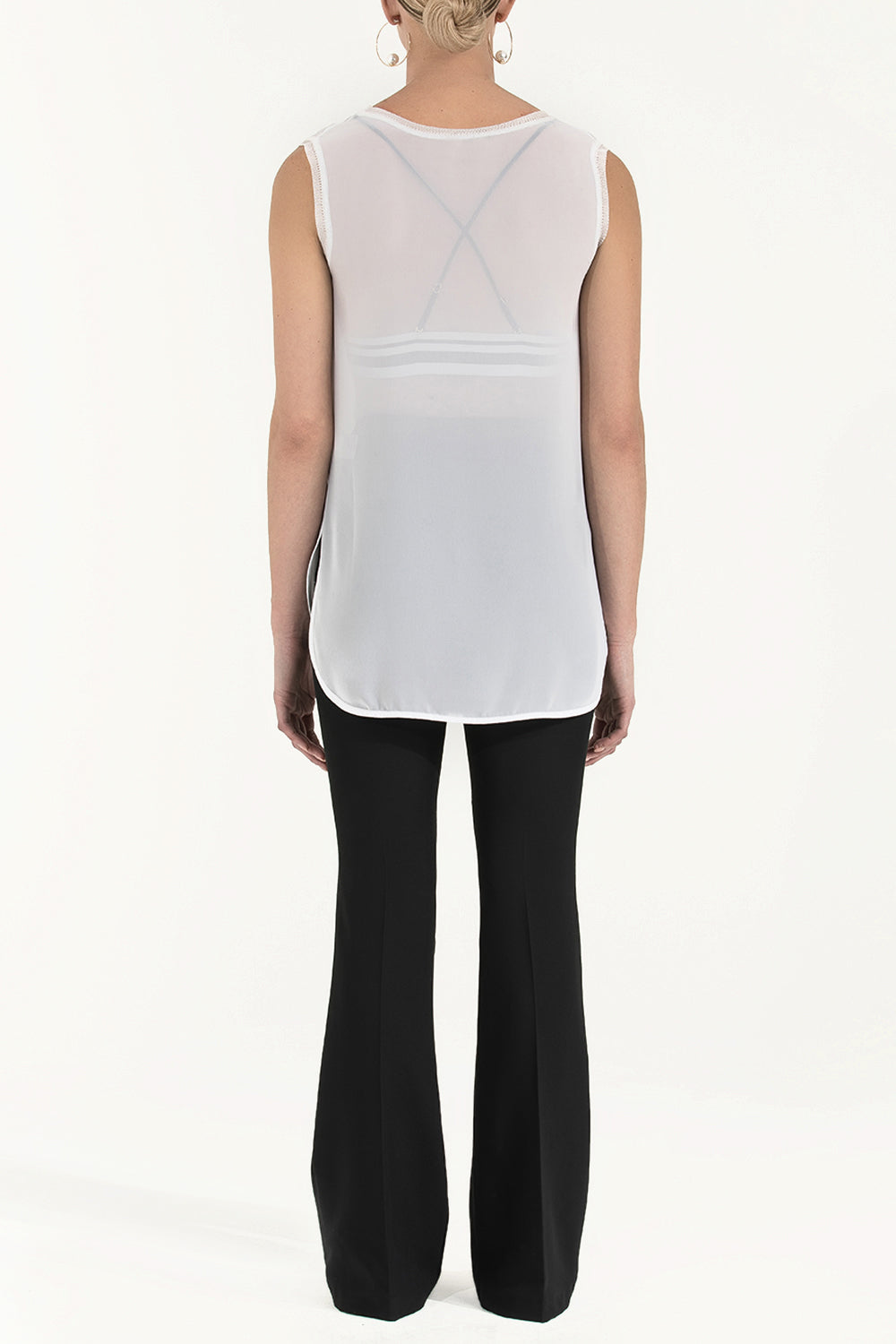 Beyaz Triko bantlı bol kesim bluz 19312