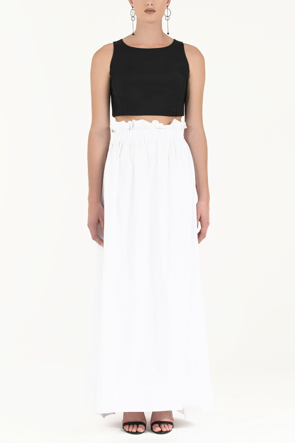 Beyaz Yüksek bel lastikli uzun etek 80995