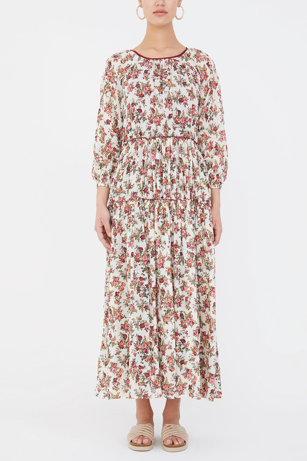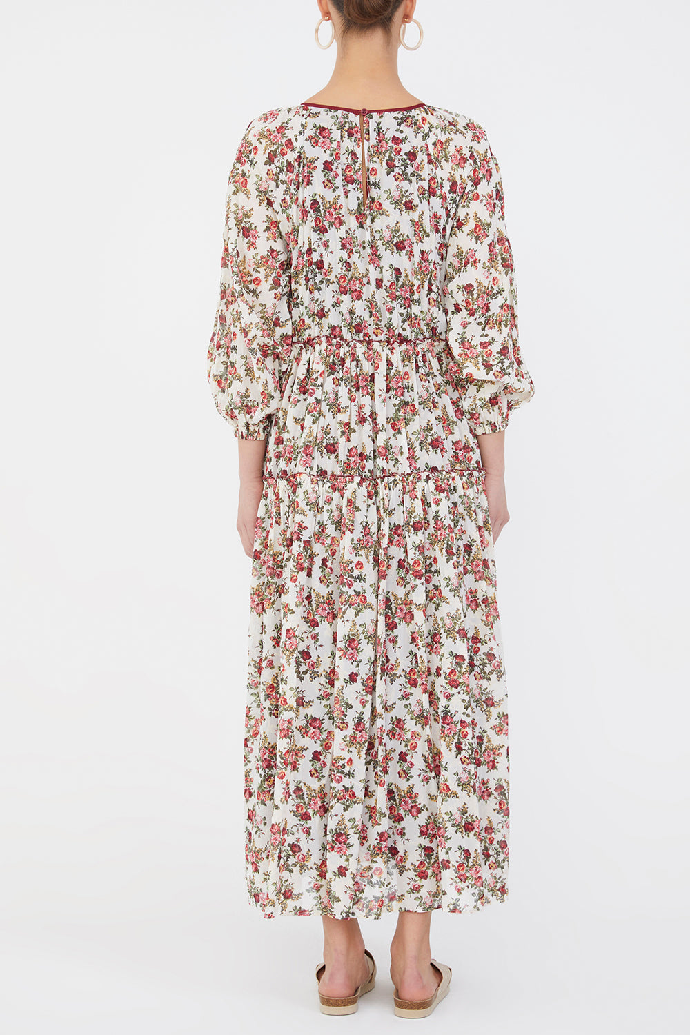 Bordo Balon kollu büzgülü uzun elbise 93007
