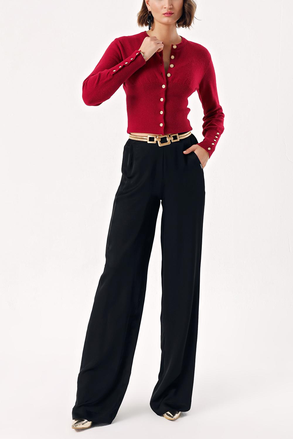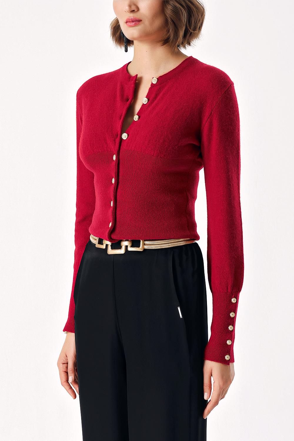 Bordo Beli oturan ribanalı kısa örme hırka 28840