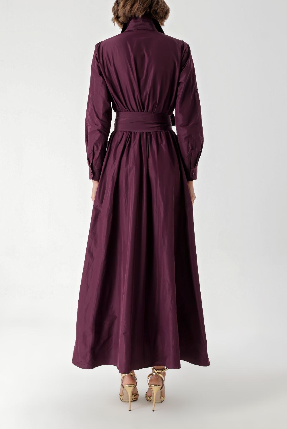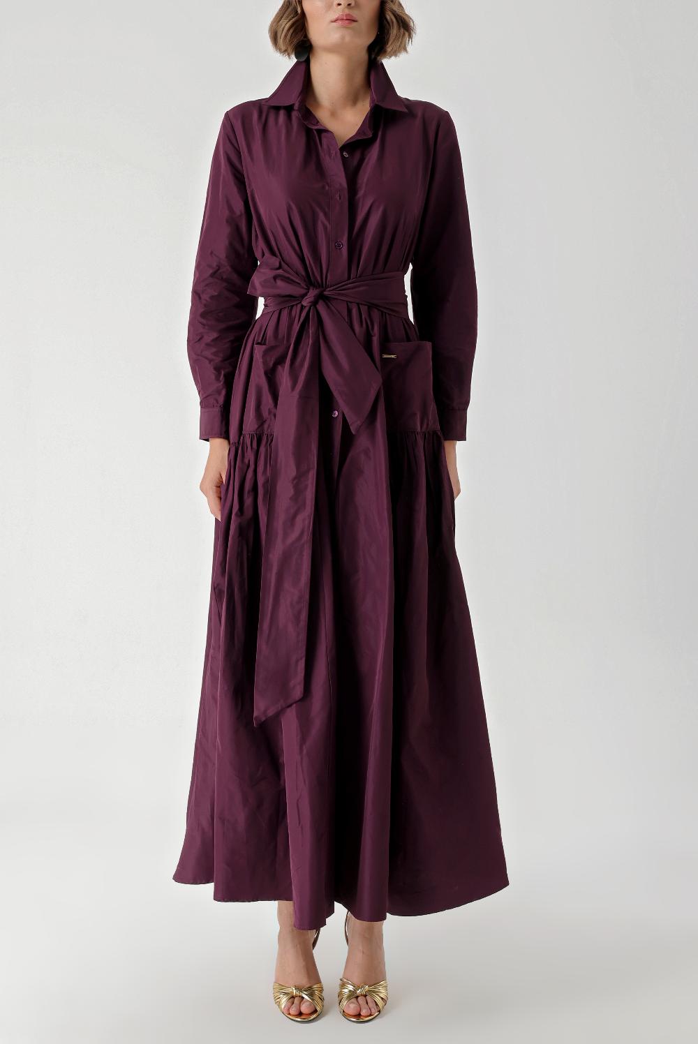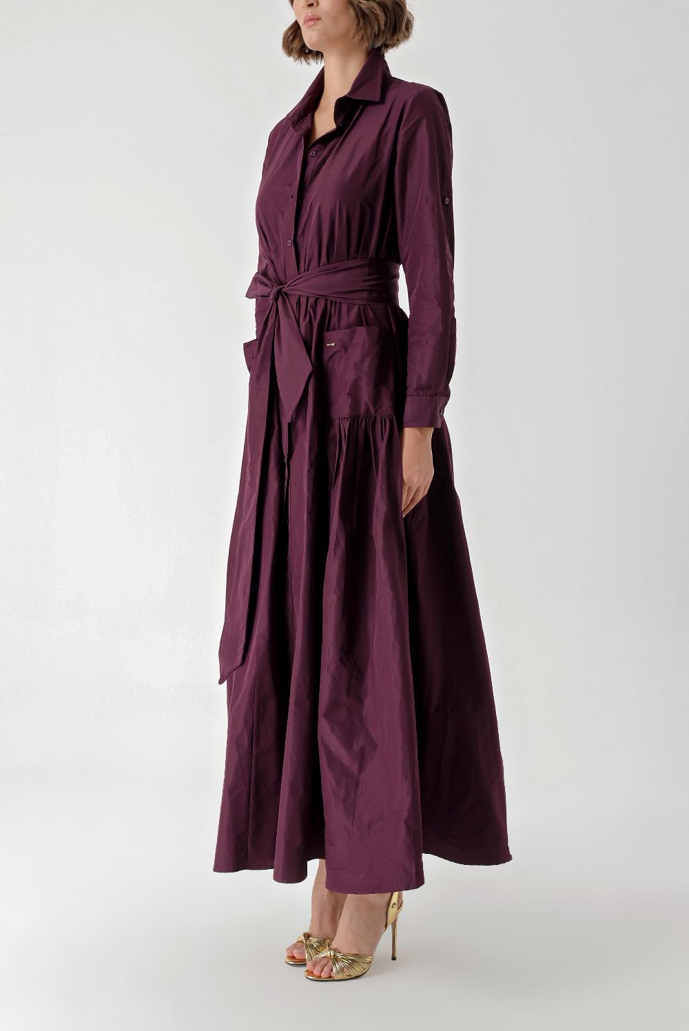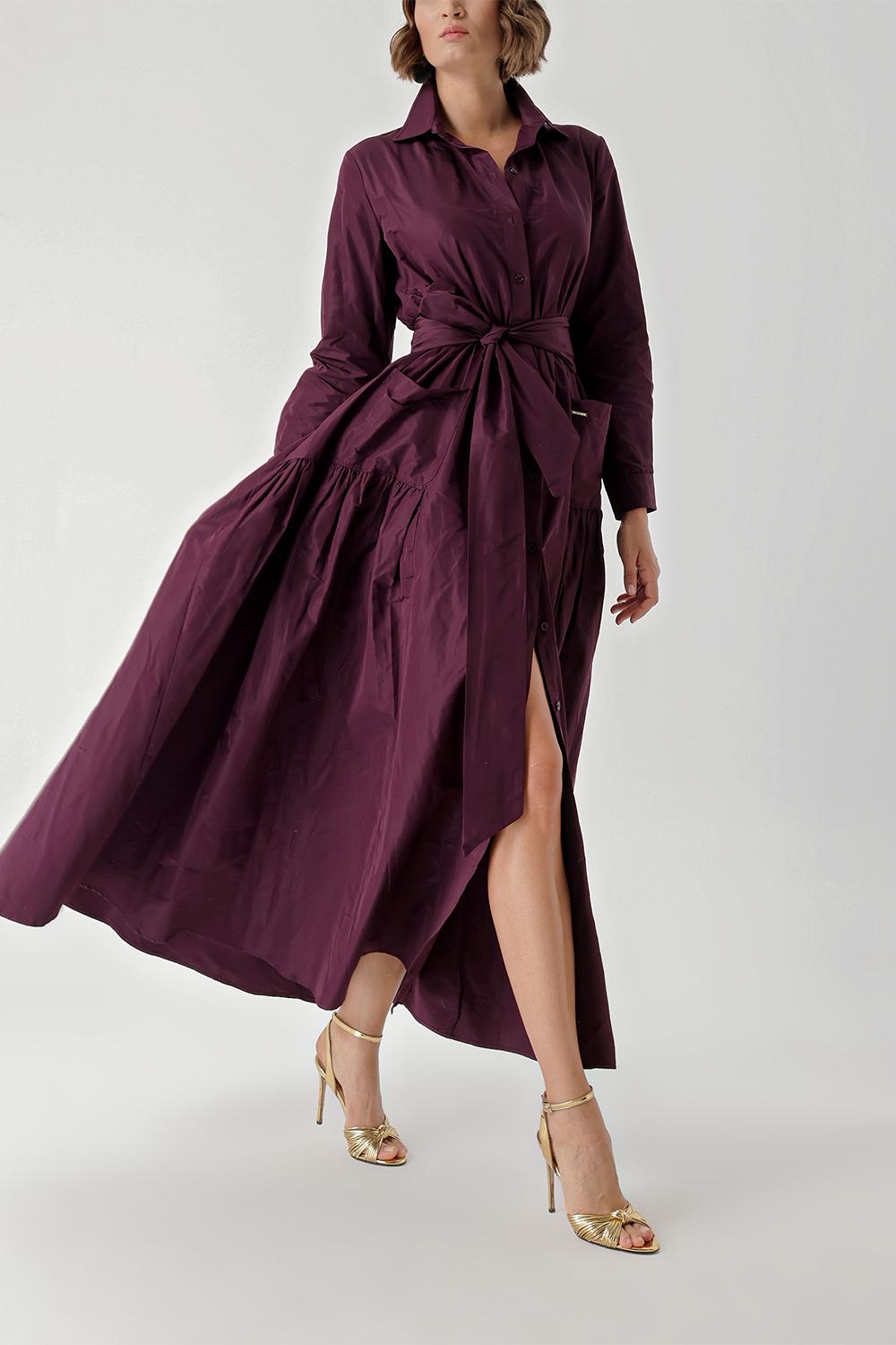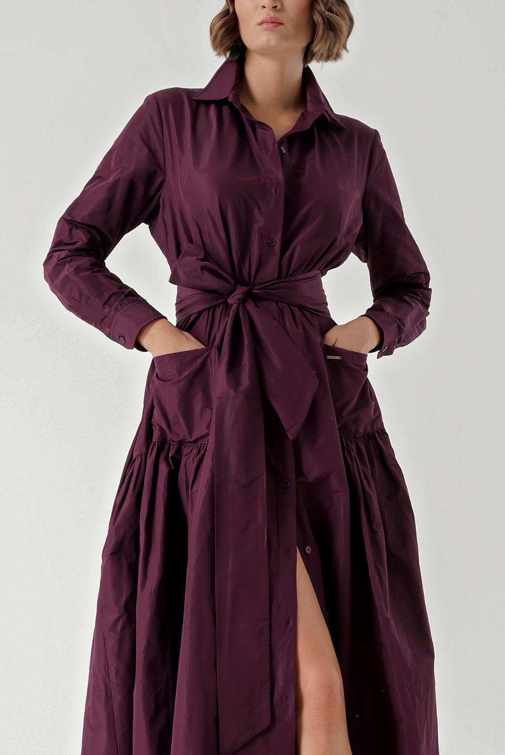 Bordo Büzgülü uzun tafta gömlek elbise 94354