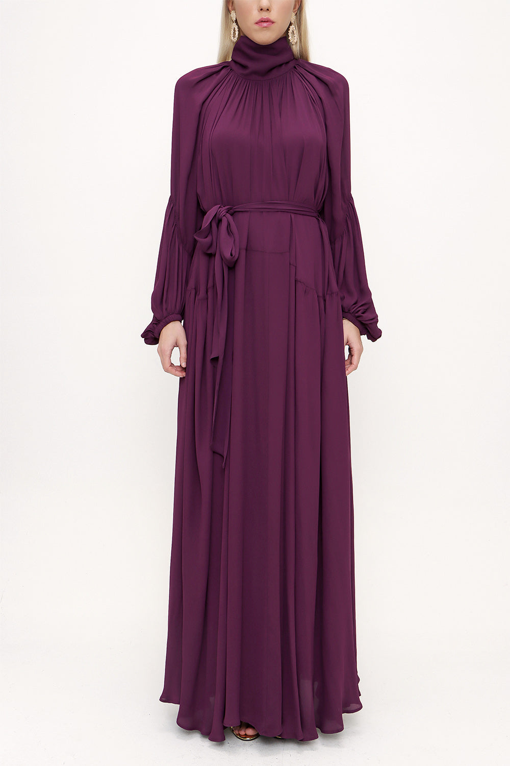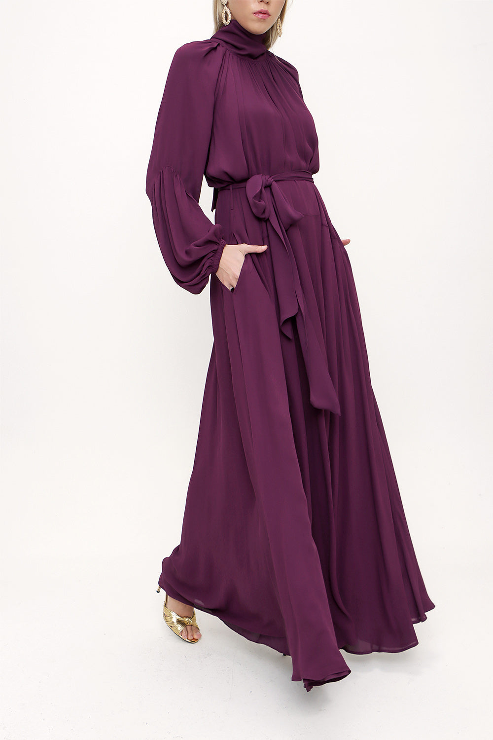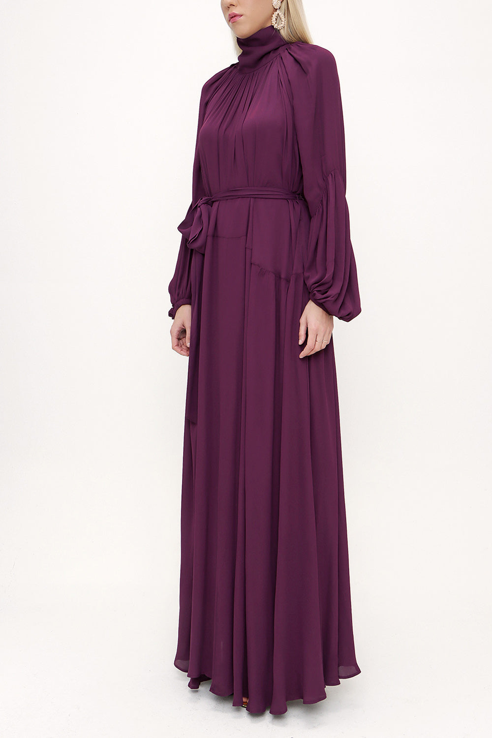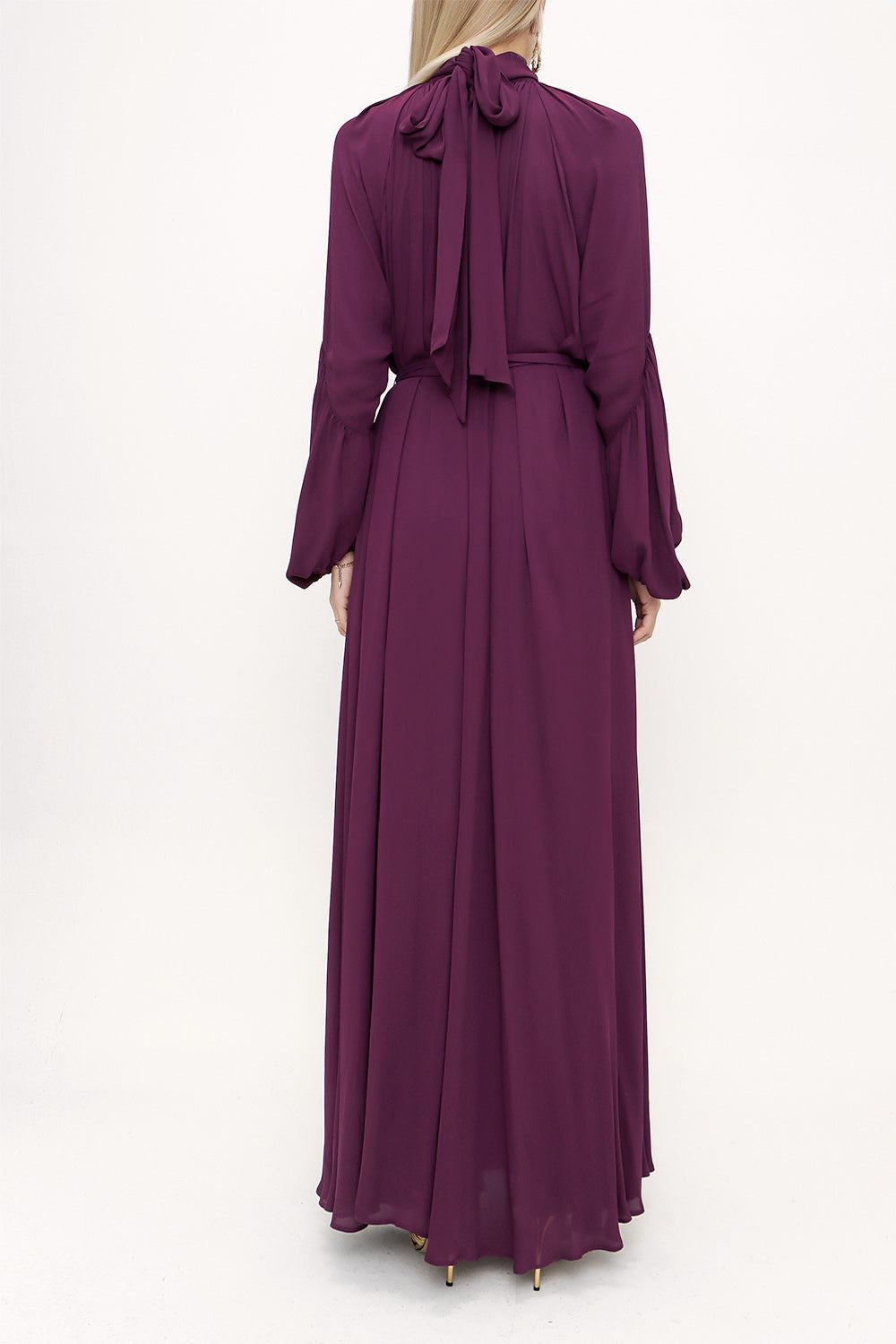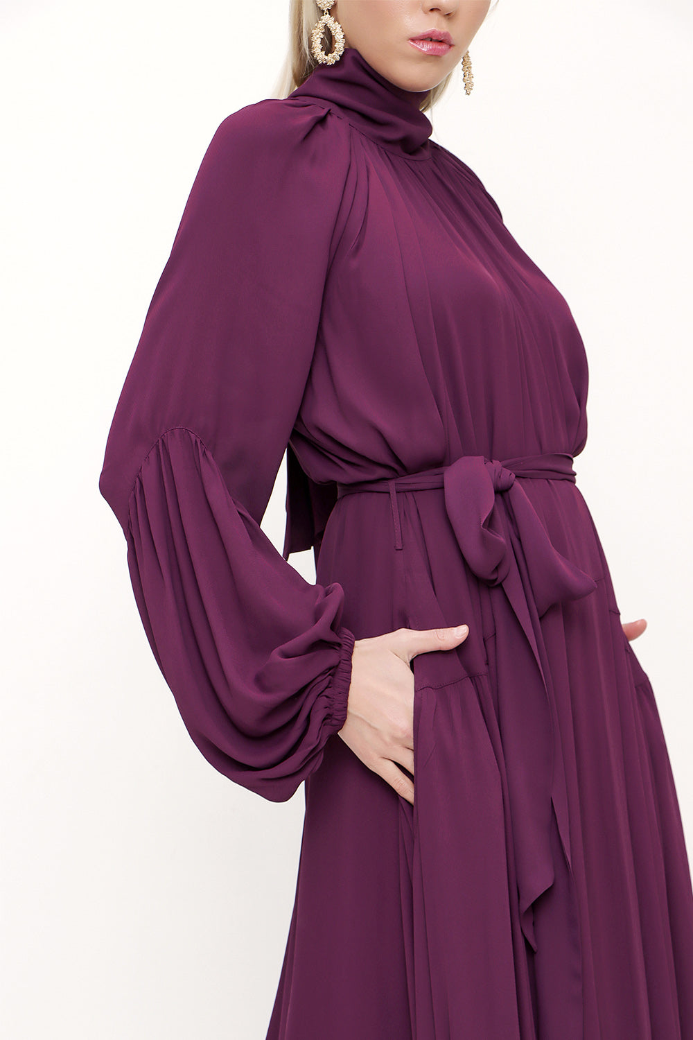 Bordo Yakası bağlamalı uzun elbise 93830