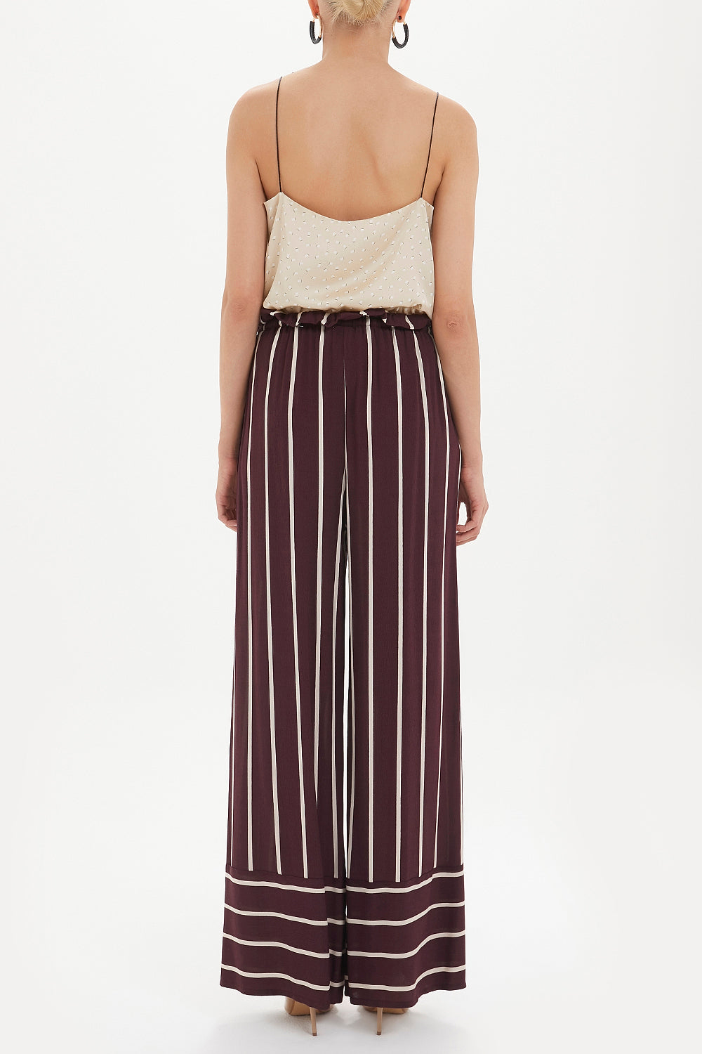 Bordo Yüksek bel çizgili bol kesim pantolon 41303