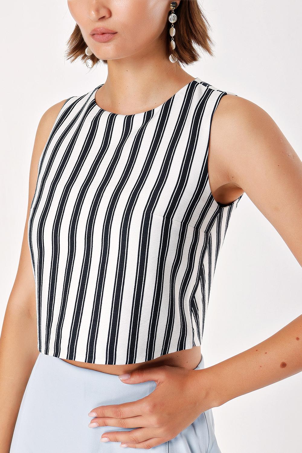 Çizgili Arkadan fermuarlı kalın askılı bluz 19457